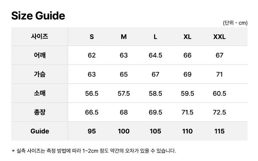 사이즈 : 95(S),100(M),105(L),110(XL),115(XXL)