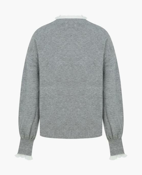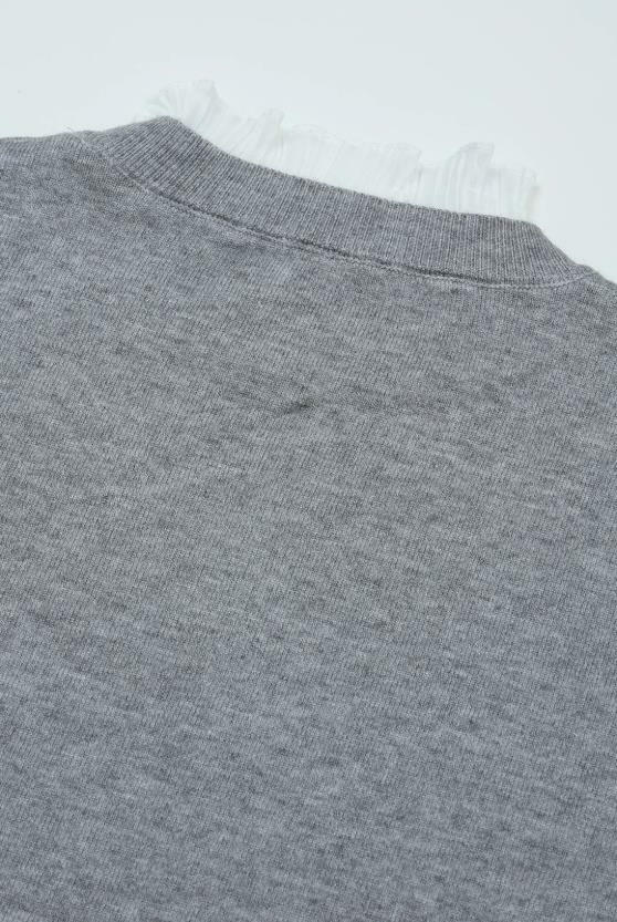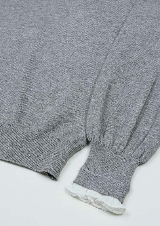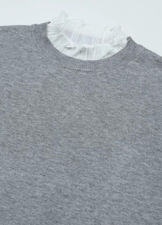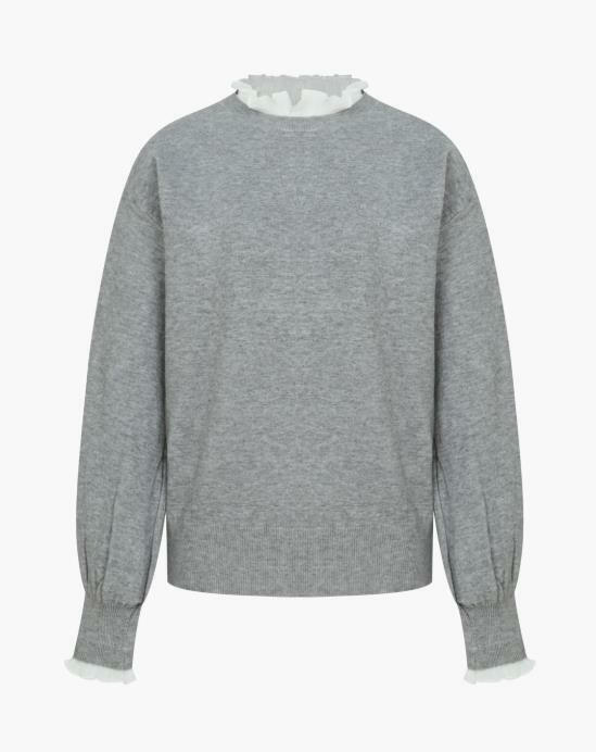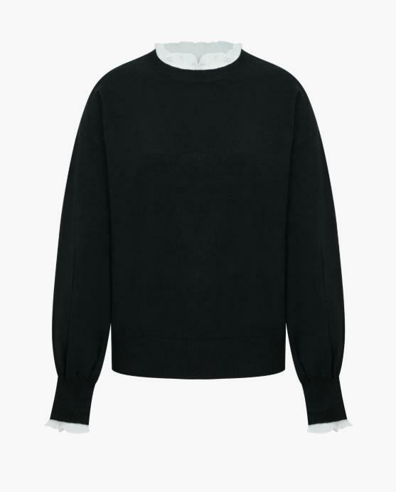 프릴넥 티셔츠가 라운드넥 니트안에 자연스럽게 레이어드도된 듯한 디자인으로|*|