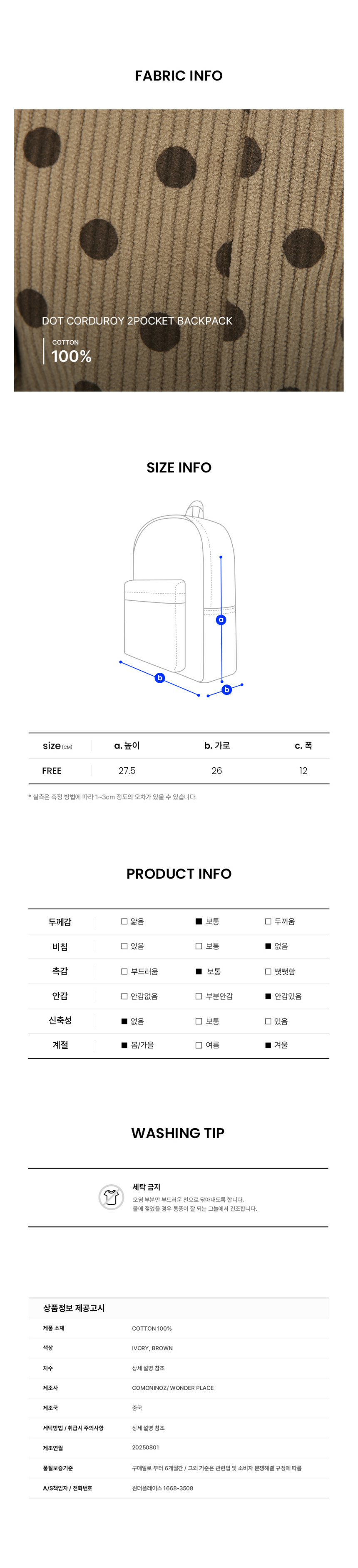 [CN]DOT CORDUROY 2POCKET BACKPACK