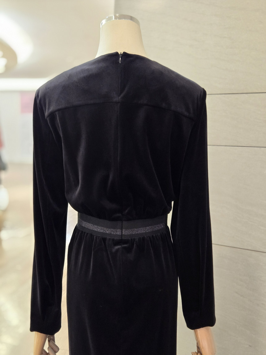 단아하면서 고급스런 벨벳정장원피스입니다.