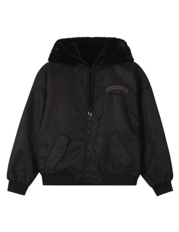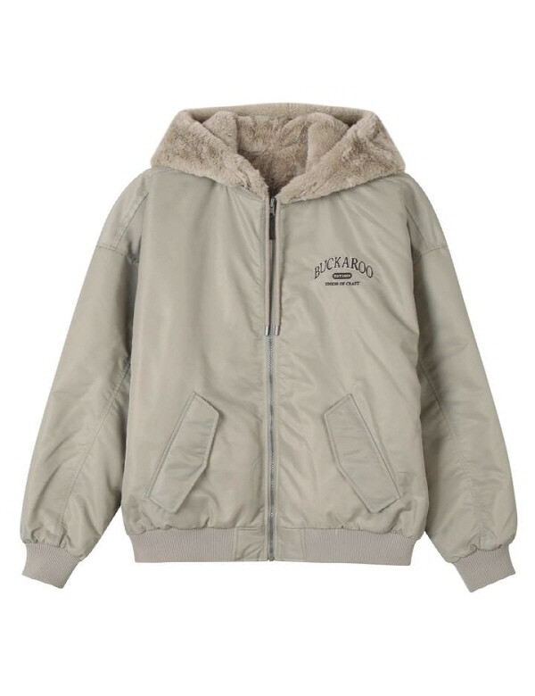 *리버시블 사양의 점퍼로 나일론 원단과 페이크퍼 소재를 사용해