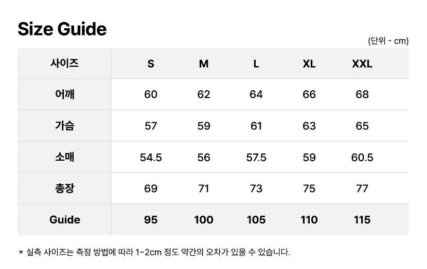 사이즈 : 95(S),100(M),105(L),110(XL),115(XXL)