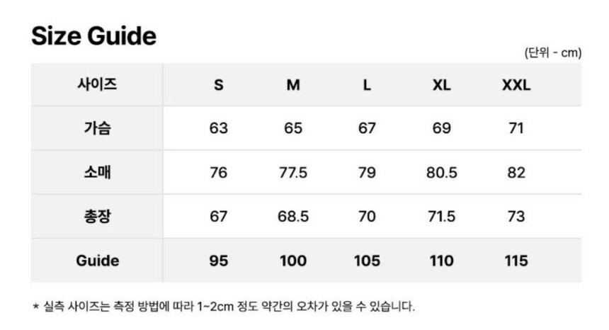 사이즈 : 95(S),100(M),105(L),110(XL),115(XXL)
