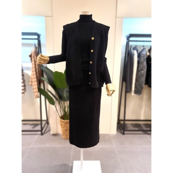 부드러운 니트원단의 쓰리피스 세트입니다.