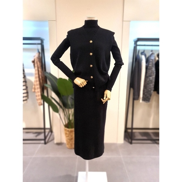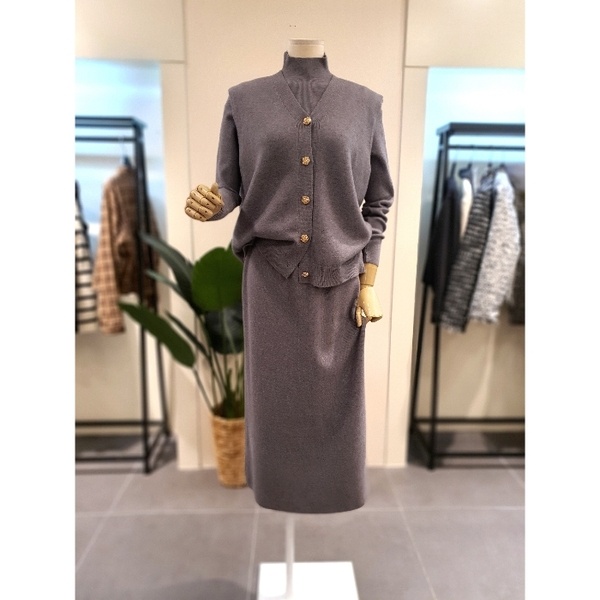 반목니트 버튼조끼 밴딩스커트 셋업으로 여성스러운 상품입니다.