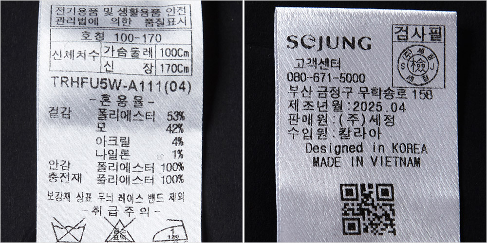 세탁방법 및 취급시 주의사항 : 케어라벨을 참조하시기 바랍니다.