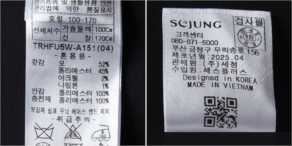 세탁방법 및 취급시 주의사항 : 케어라벨을 참조하시기 바랍니다.