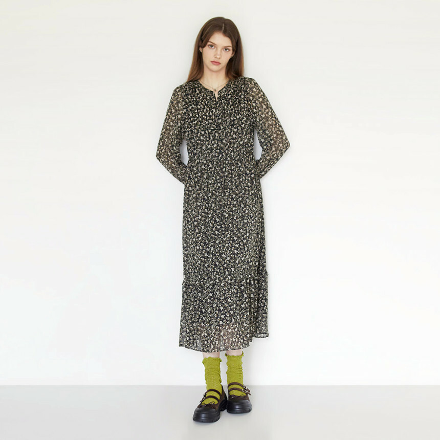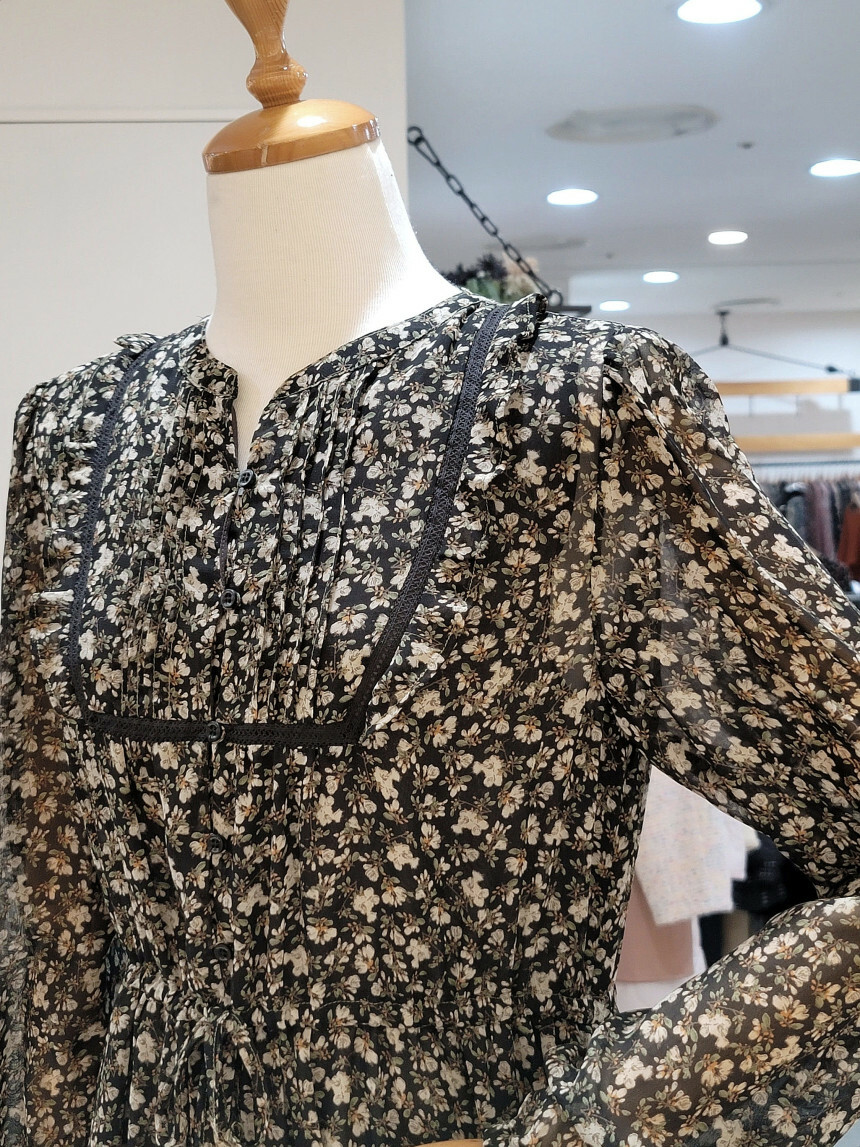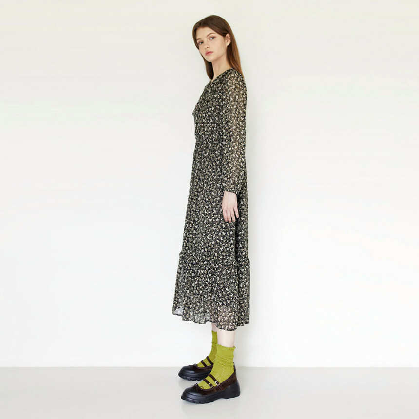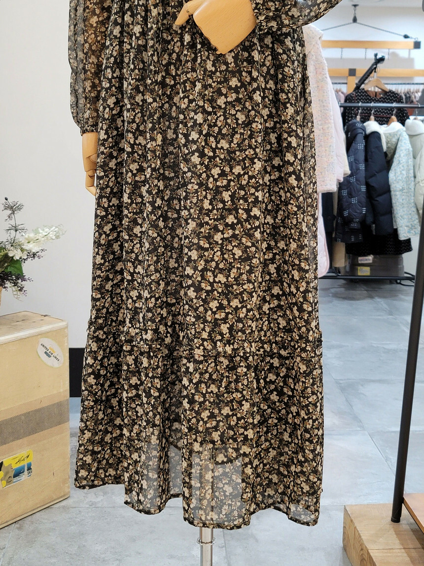 플라워 패턴이 들어간 가벼운 시폰 원피스입니다.