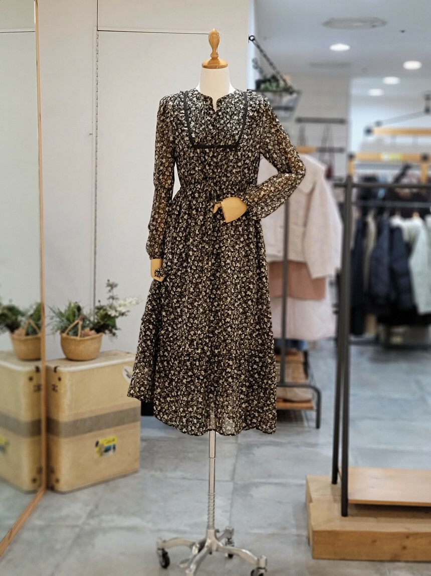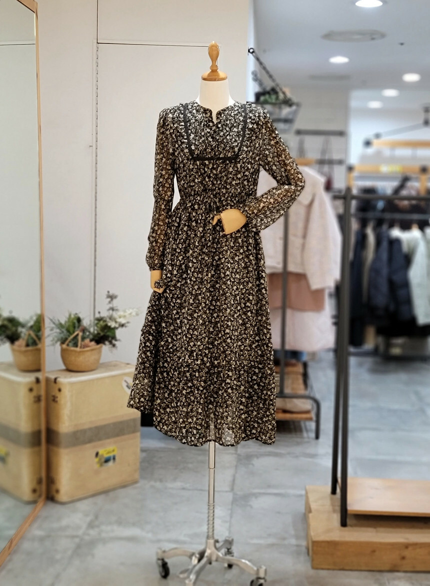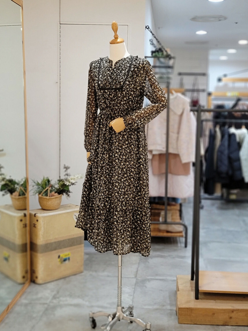 플라워 패턴이 들어간 가벼운 시폰 원피스입니다.