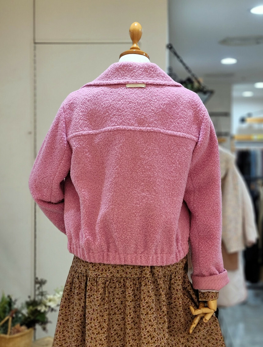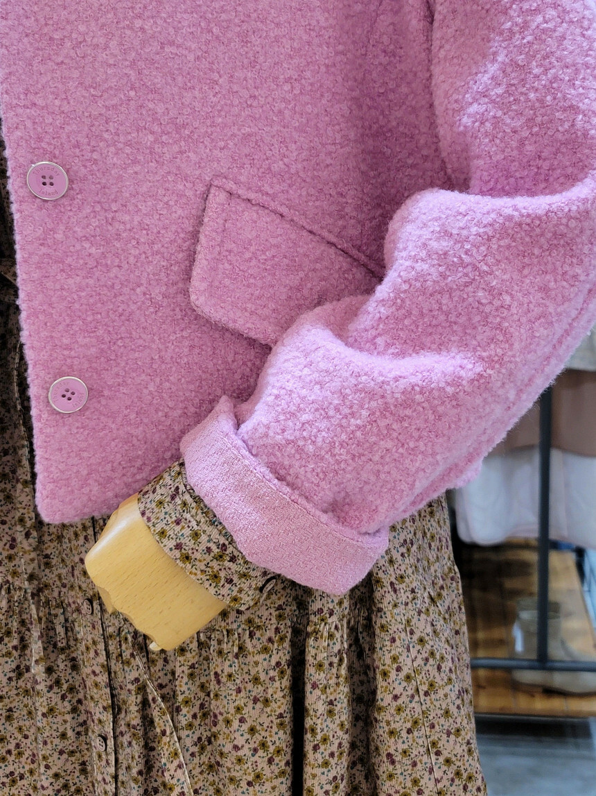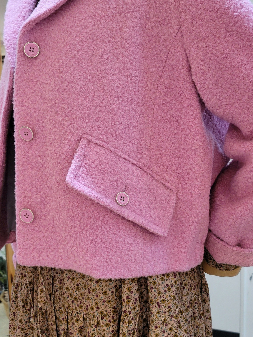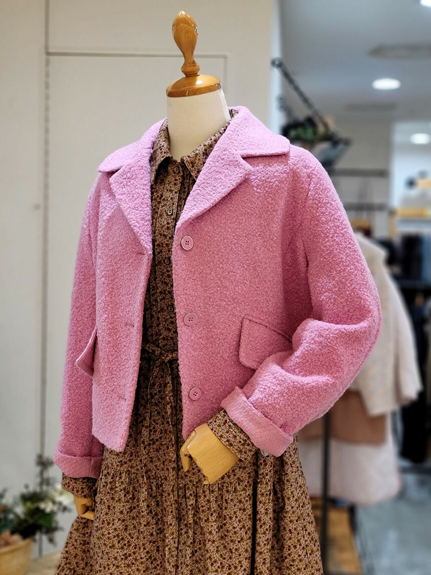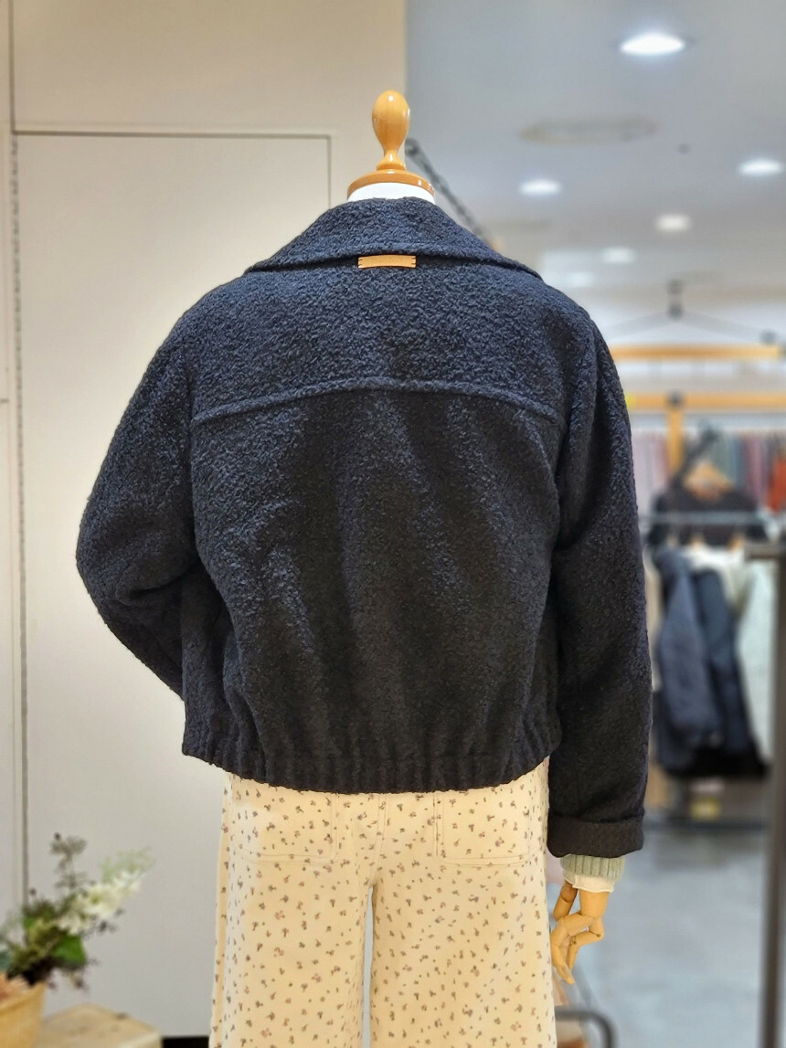 부클 원단으로 동그란 코쿤 핏이 특징인 재킷입니다.