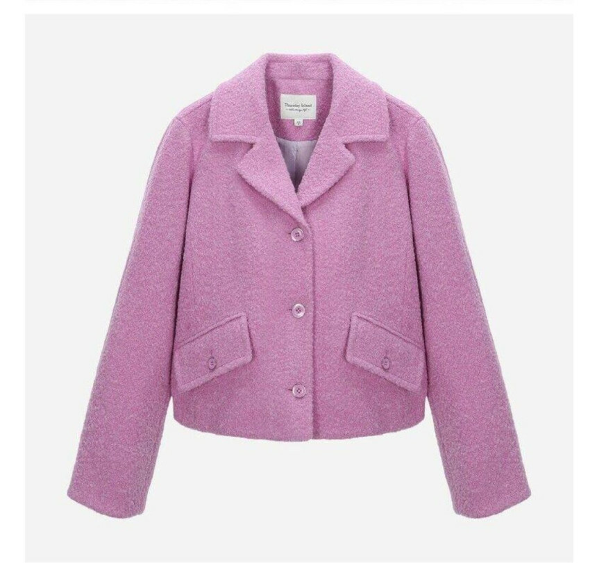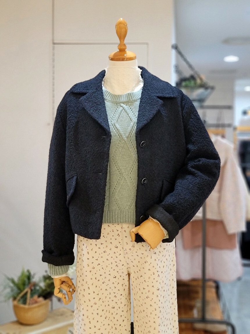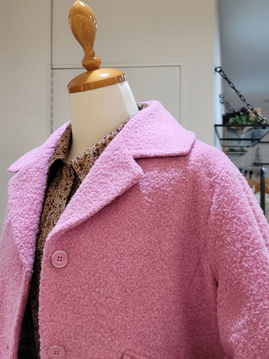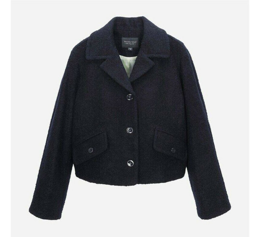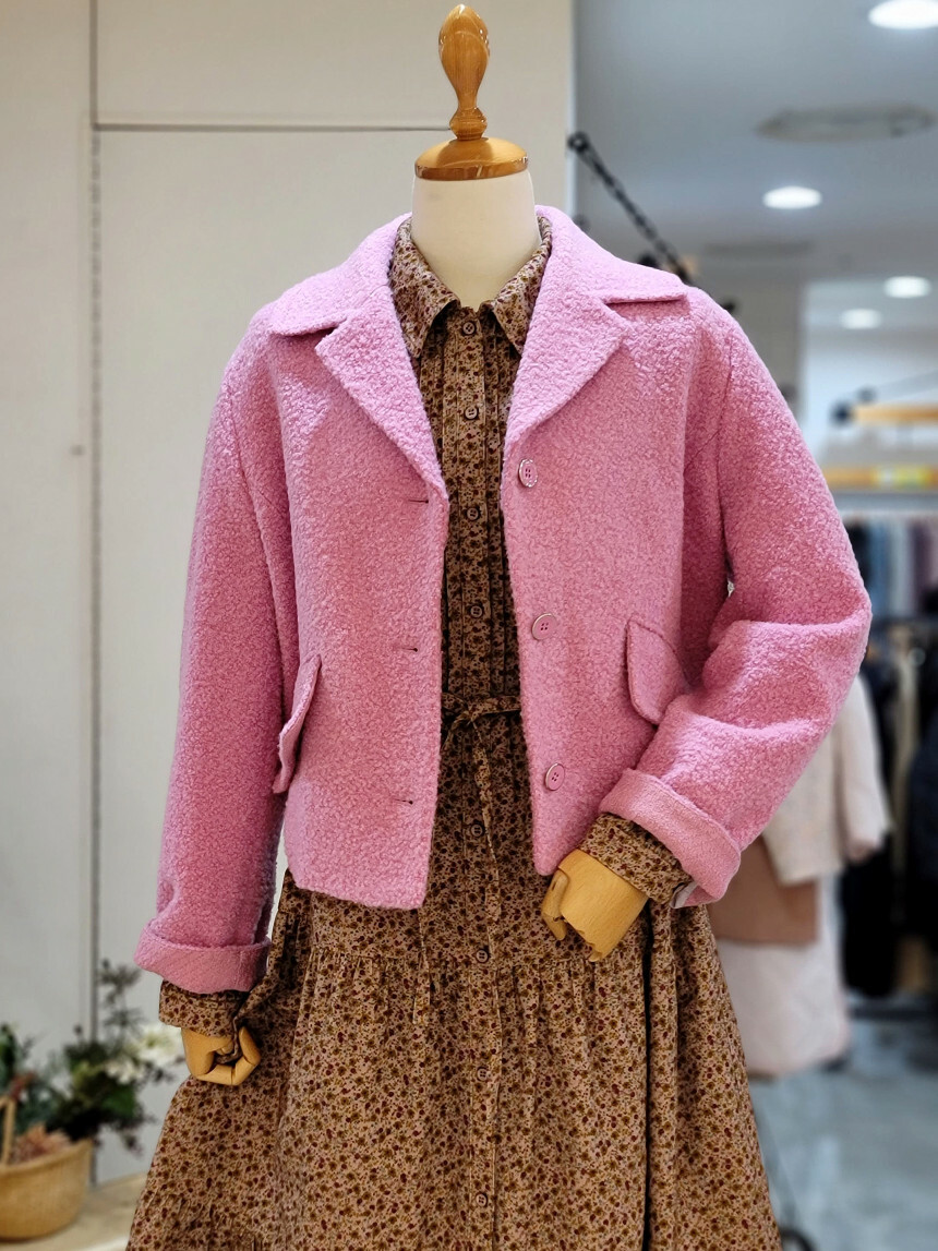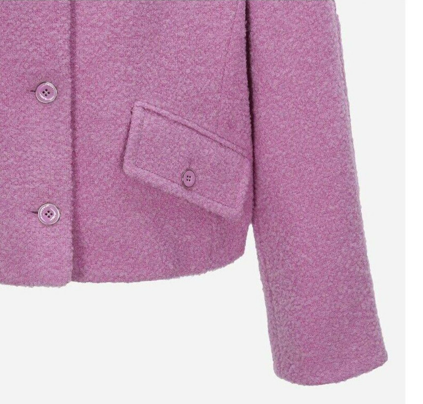 부클 원단으로 동그란 코쿤 핏이 특징인 재킷입니다.