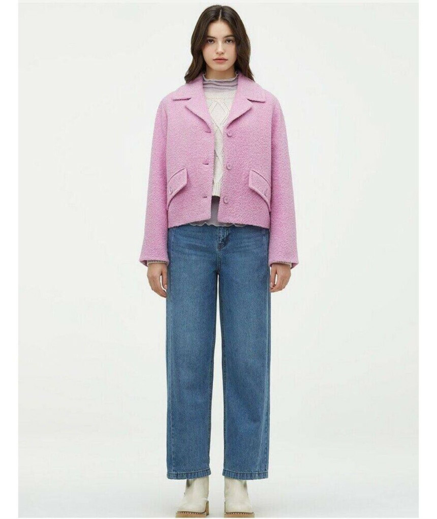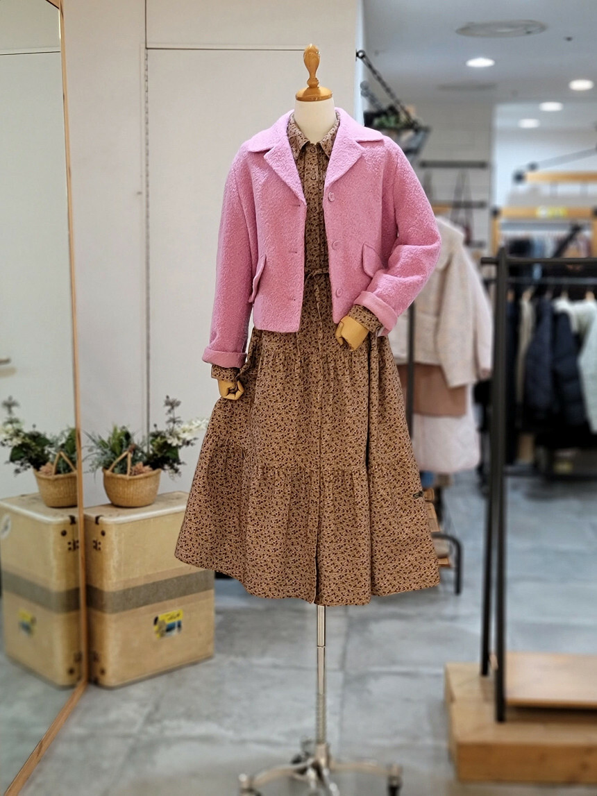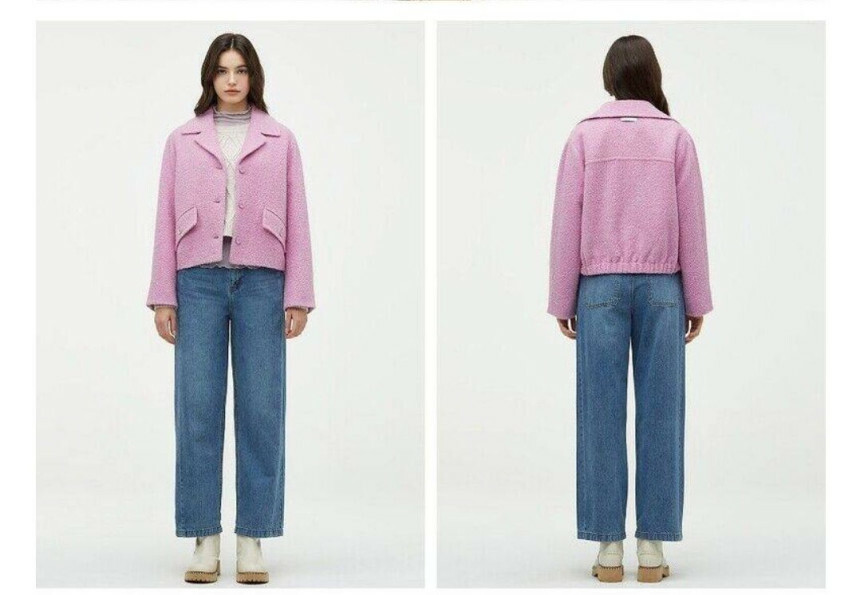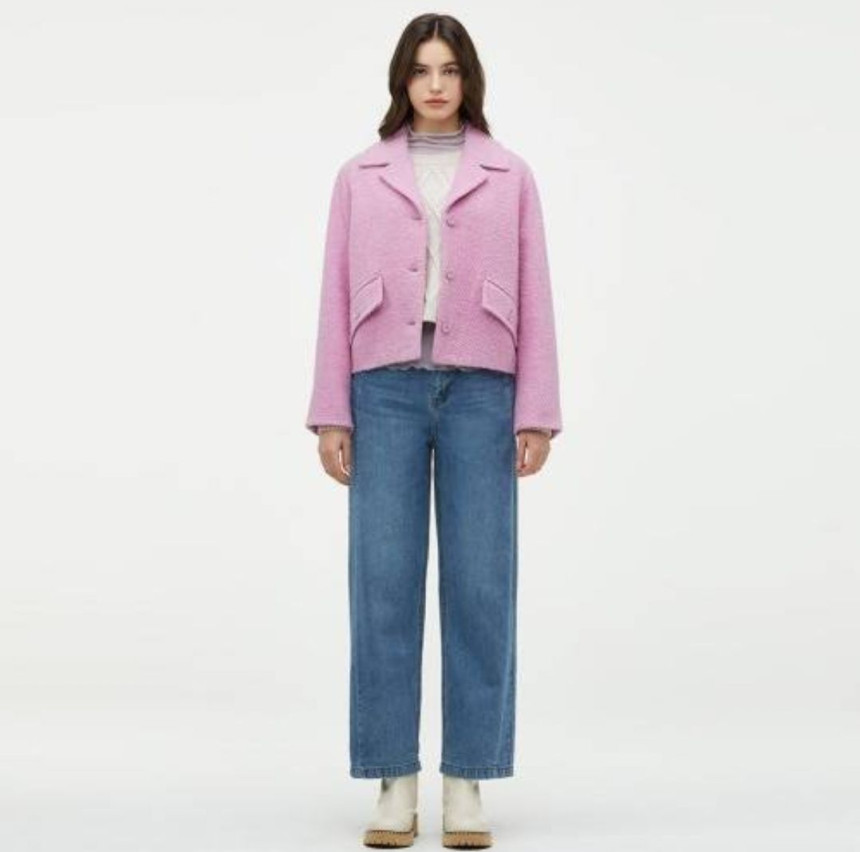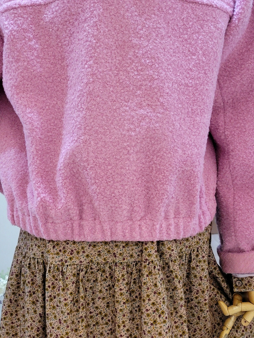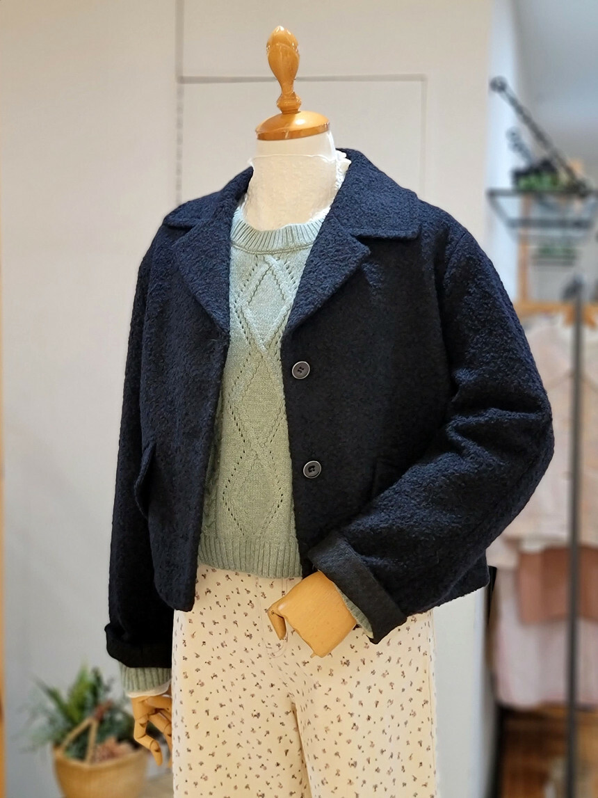 부클 원단으로 동그란 코쿤 핏이 특징인 재킷입니다.