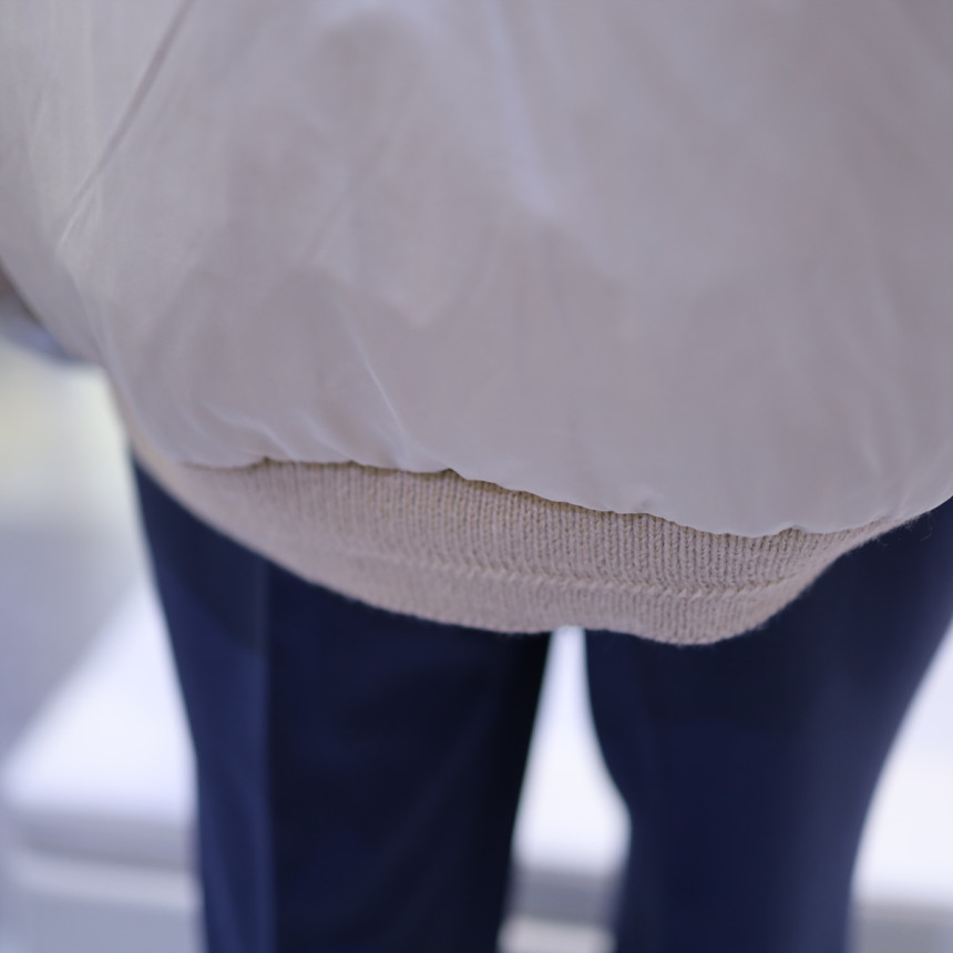 하이넥 디자인에 스트링 디테일로 보온성을 더해주며