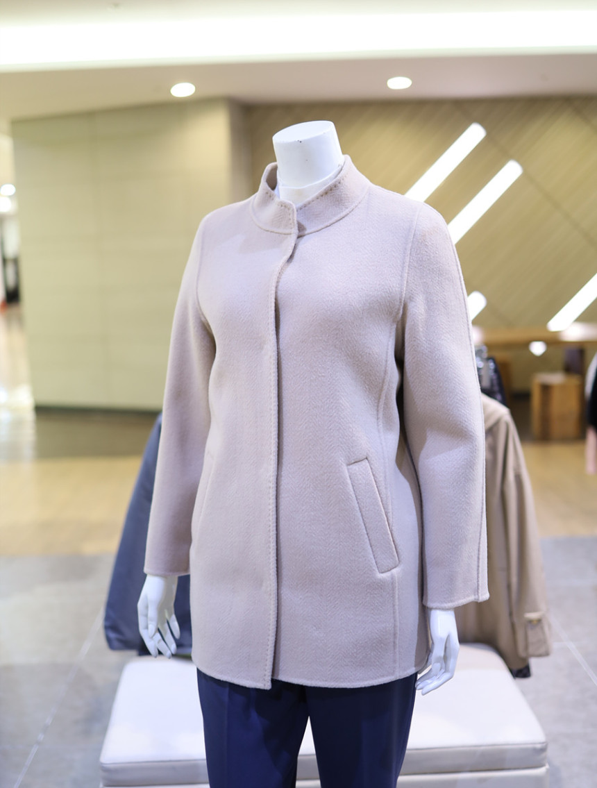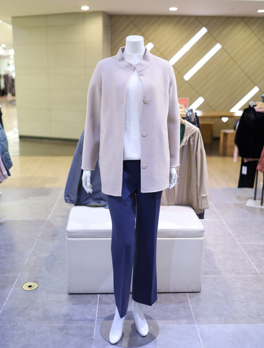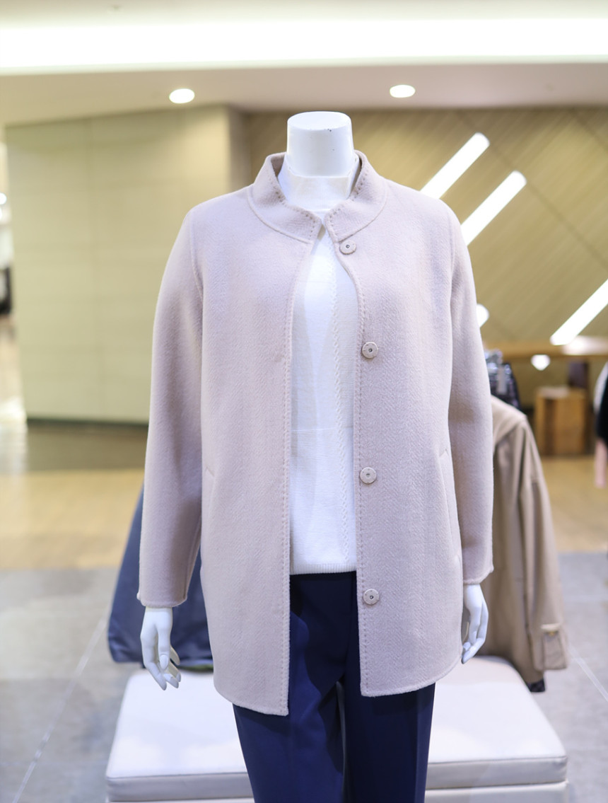 울 혼방 소재로 포근하며 반넥과 히든 버튼으로