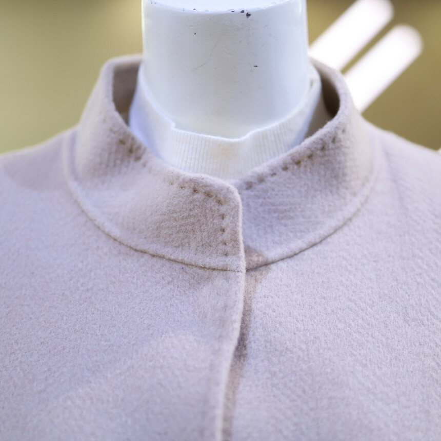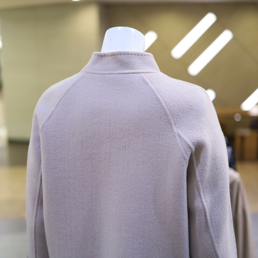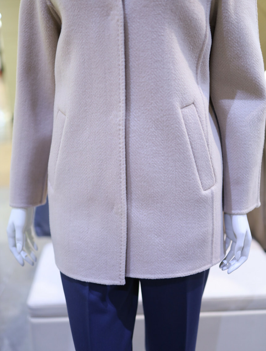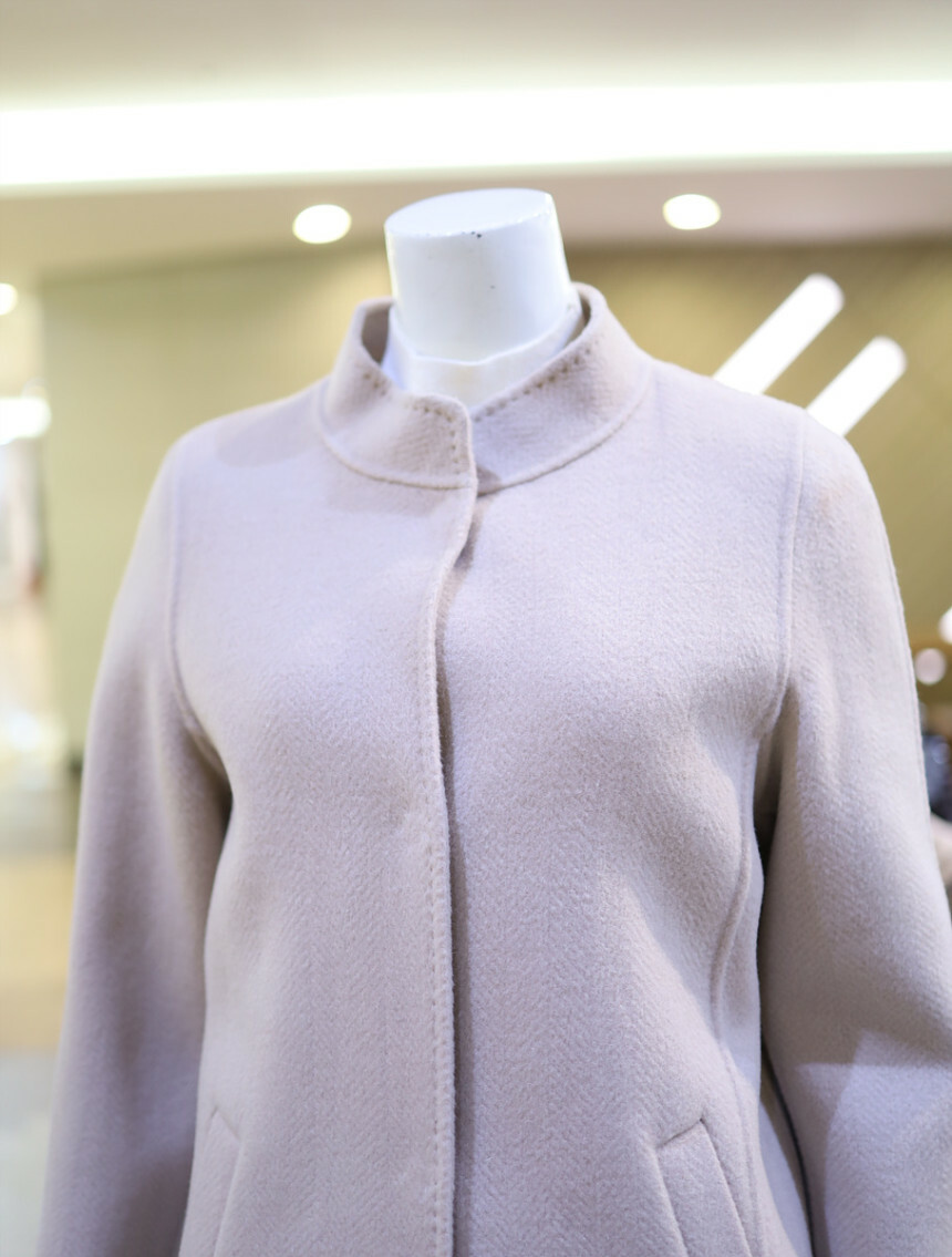 울 혼방 소재로 포근하며 반넥과 히든 버튼으로