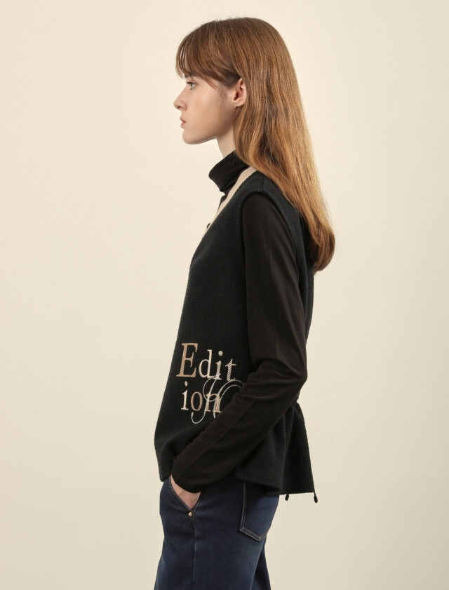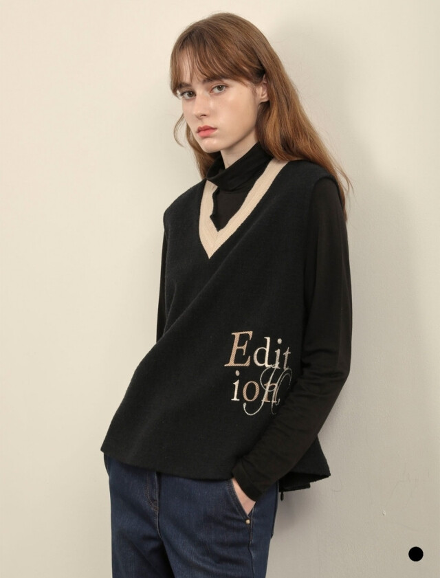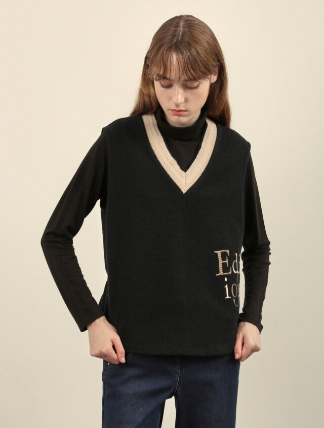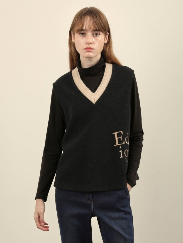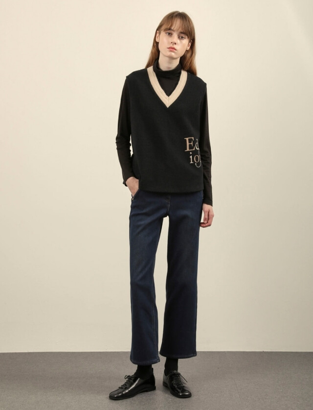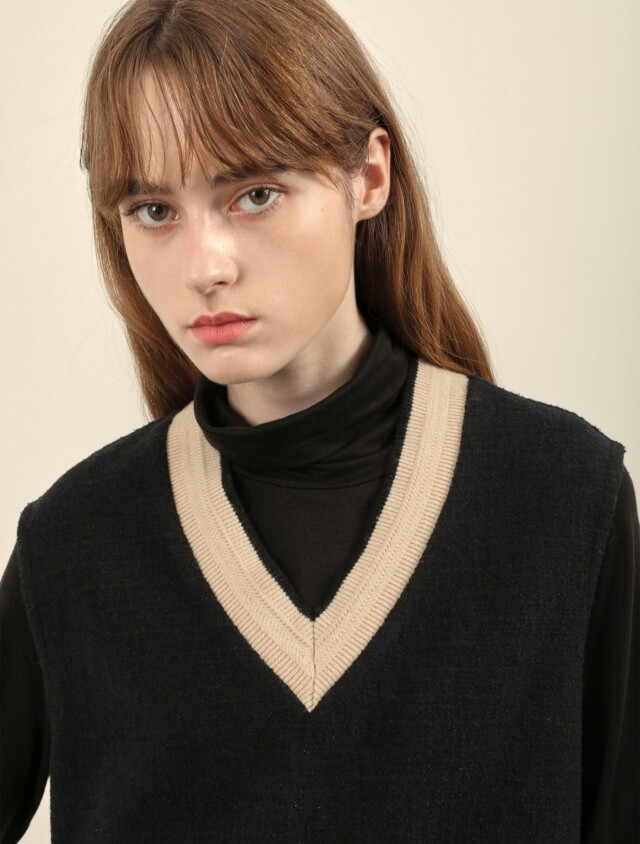 까끔하게 떨어지는 핏의 브이넥 베스트로 체형에