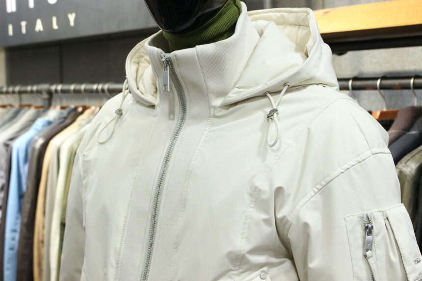 후드일체형에 암포켓으로 포인트를주어 캐주얼하게 연출하기 좋습니다