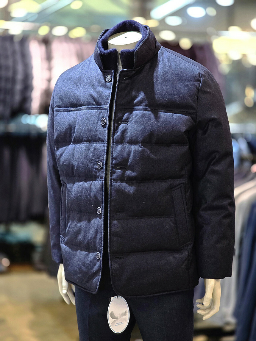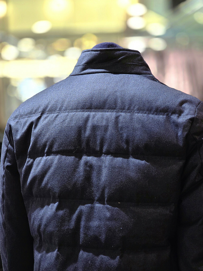 거위솜털 충전재를 사용해 가벼우면서도 안정적인 보온성을 제공하고, 세련된 네이비톤으로 고급스러운 인상을 줍니다.