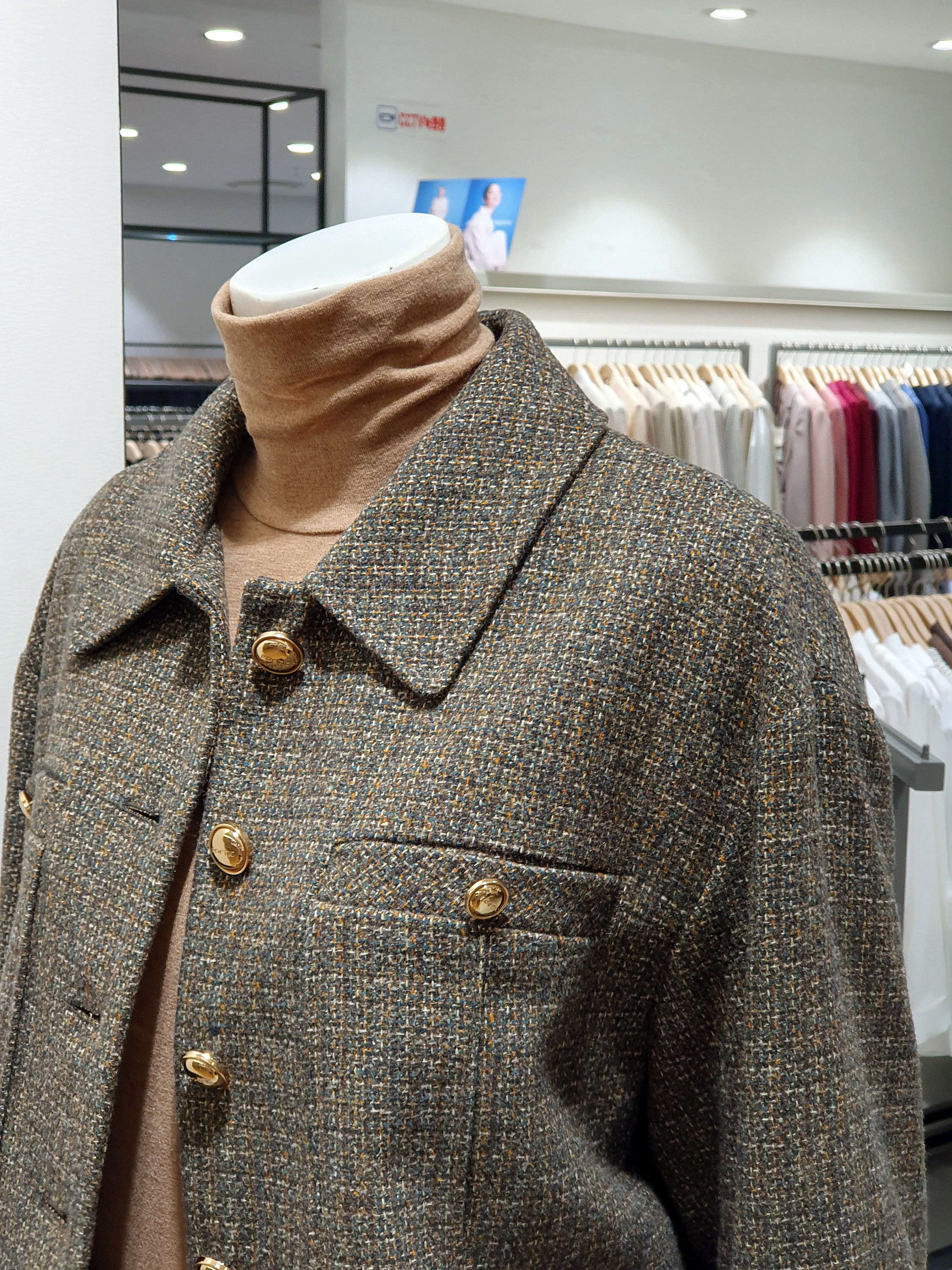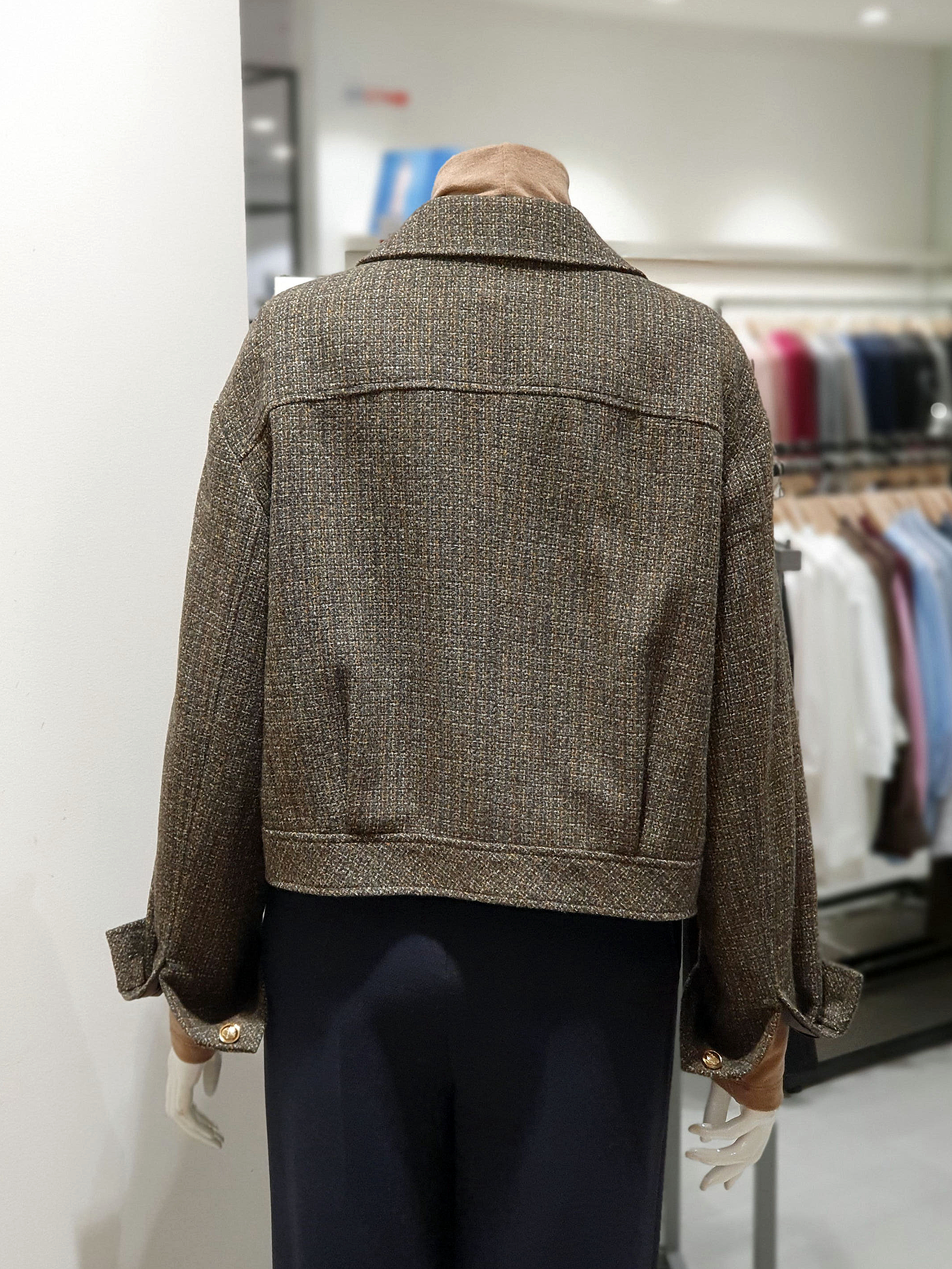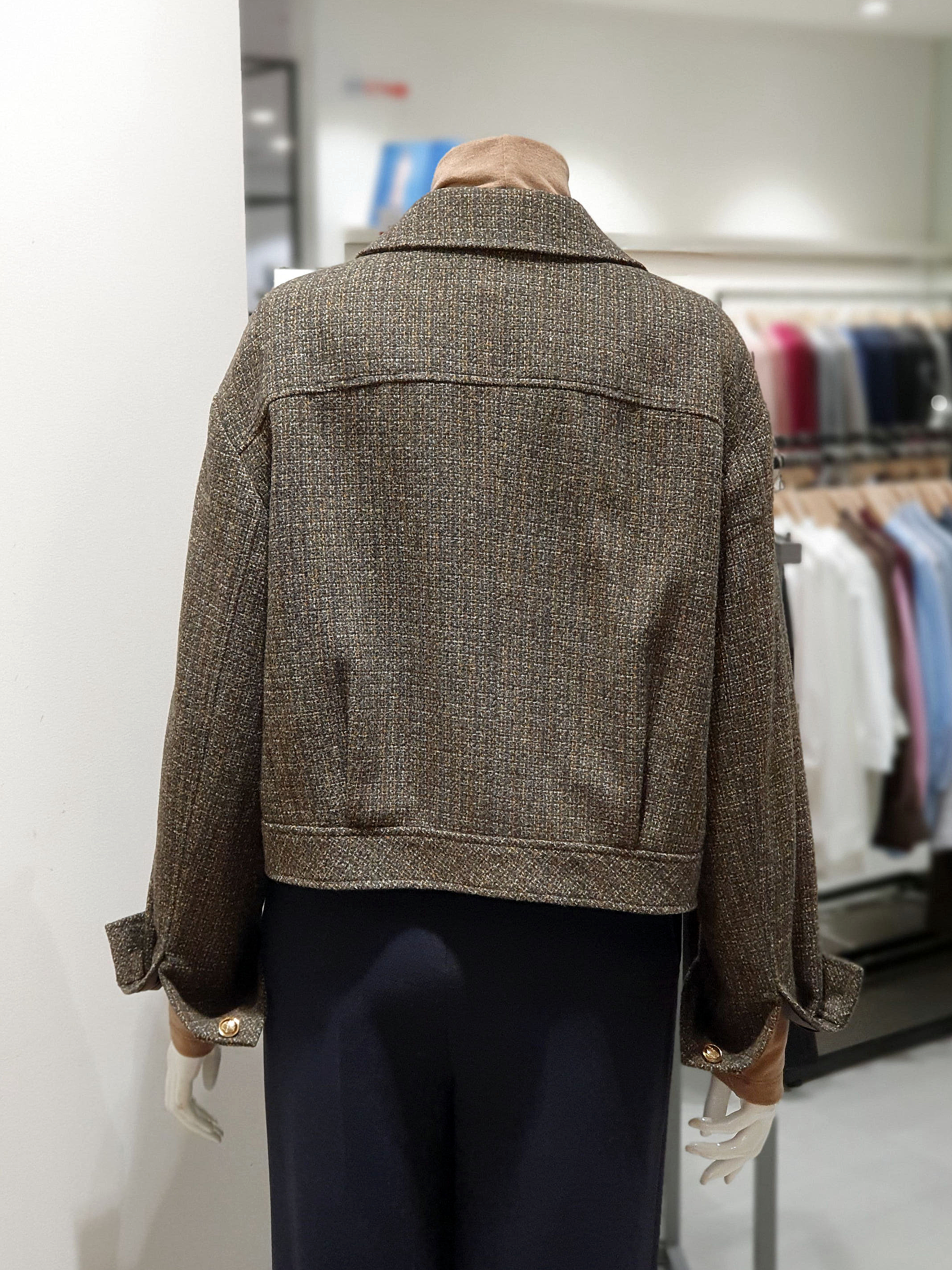 조직감이 느껴지는 트위드 소재가 매력적인 재킷입니다.