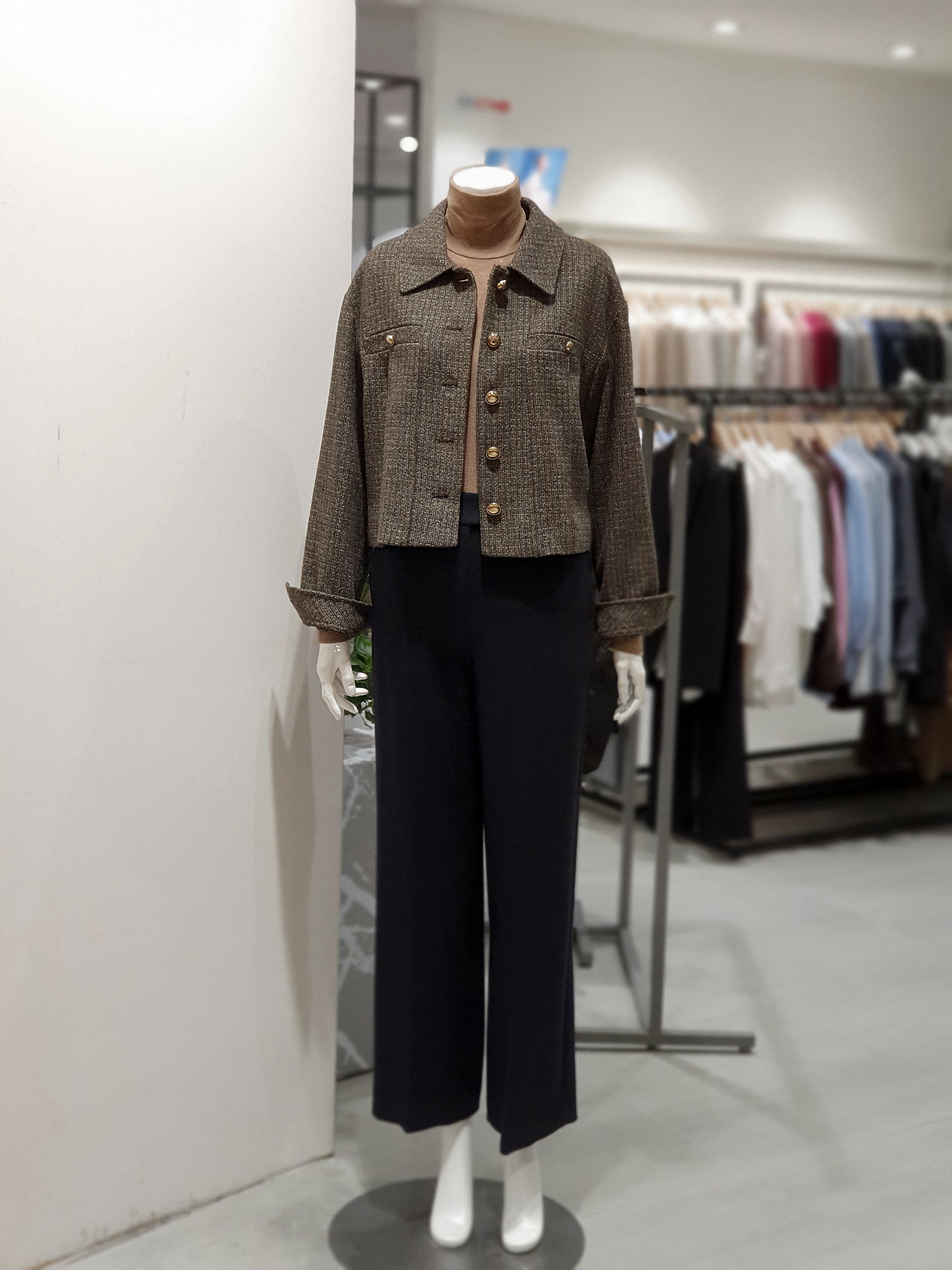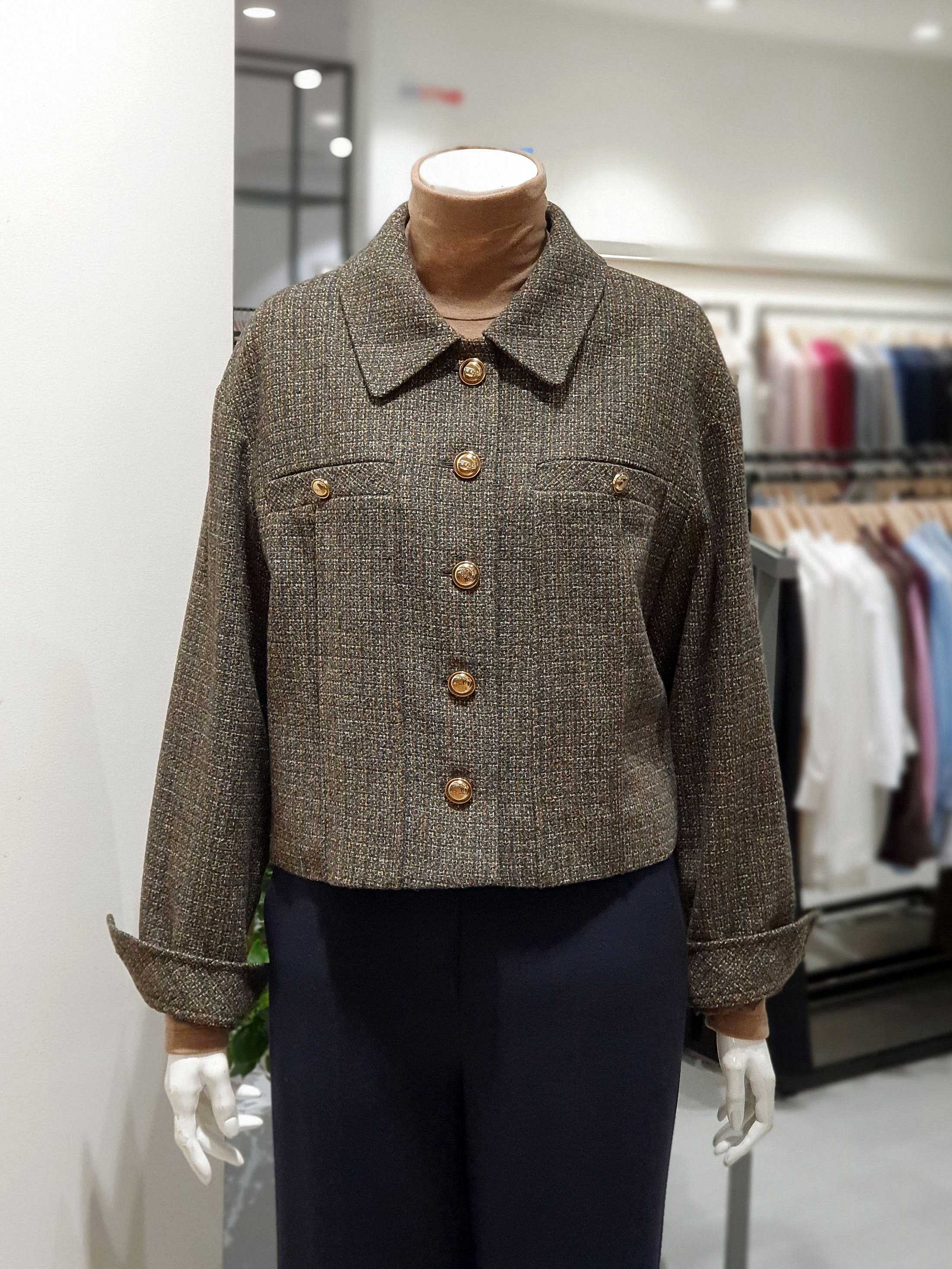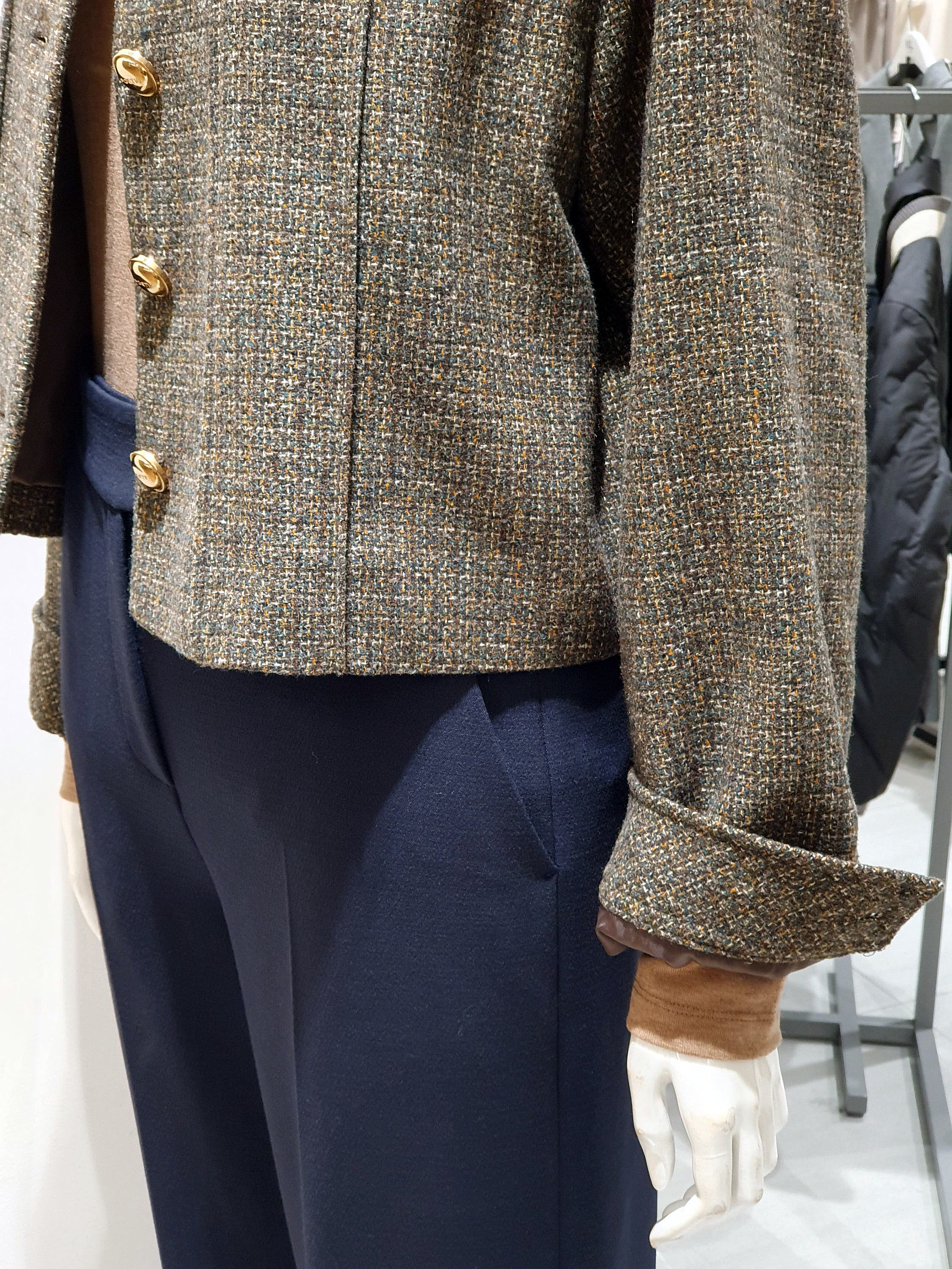 조직감이 느껴지는 트위드 소재가 매력적인 재킷입니다.