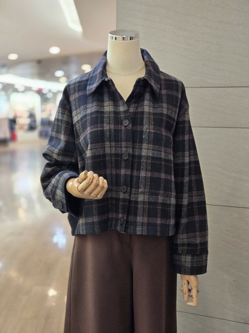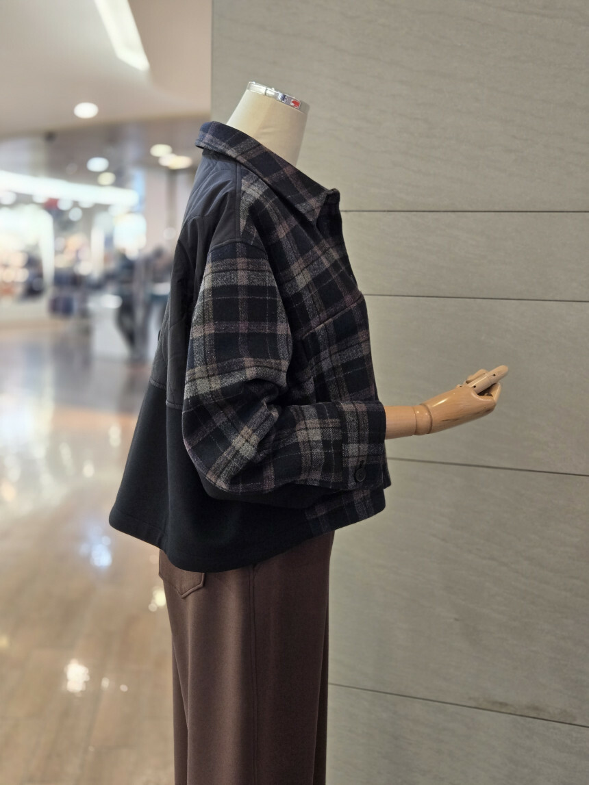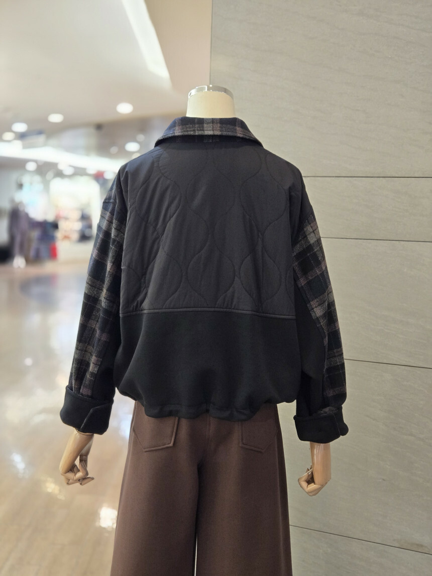 체크 누빔배색 스트링루즈핏재킷25AGJ49