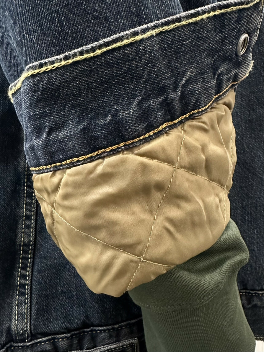 몸통부분은 양털로 소매부분은 누빔으로 되어있어 따뜻하며