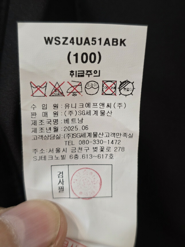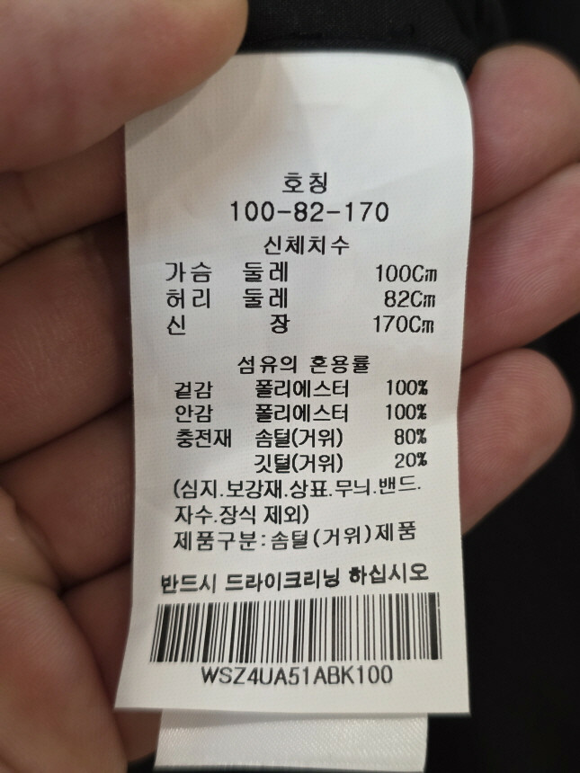 안감 : 폴리에스터 100%