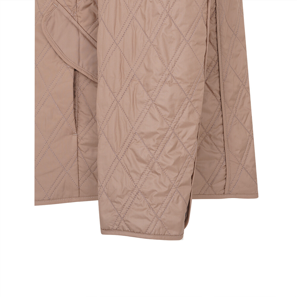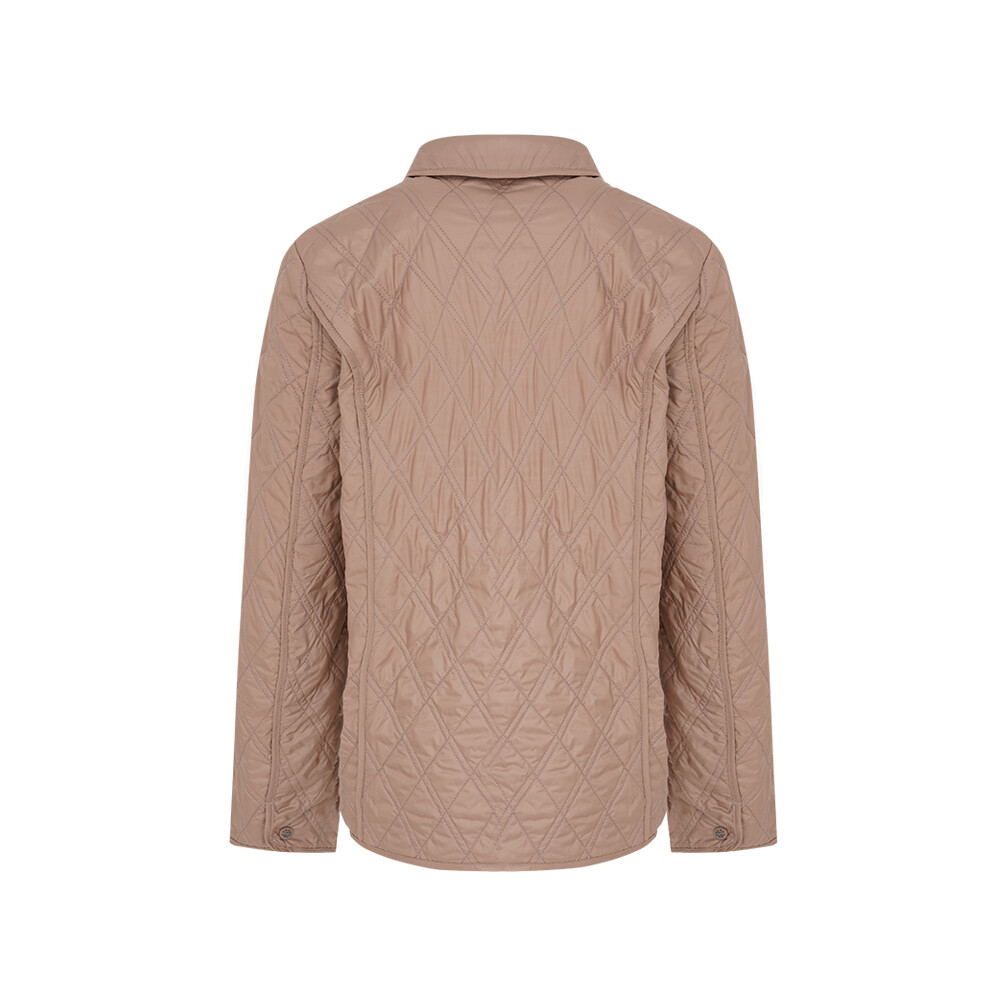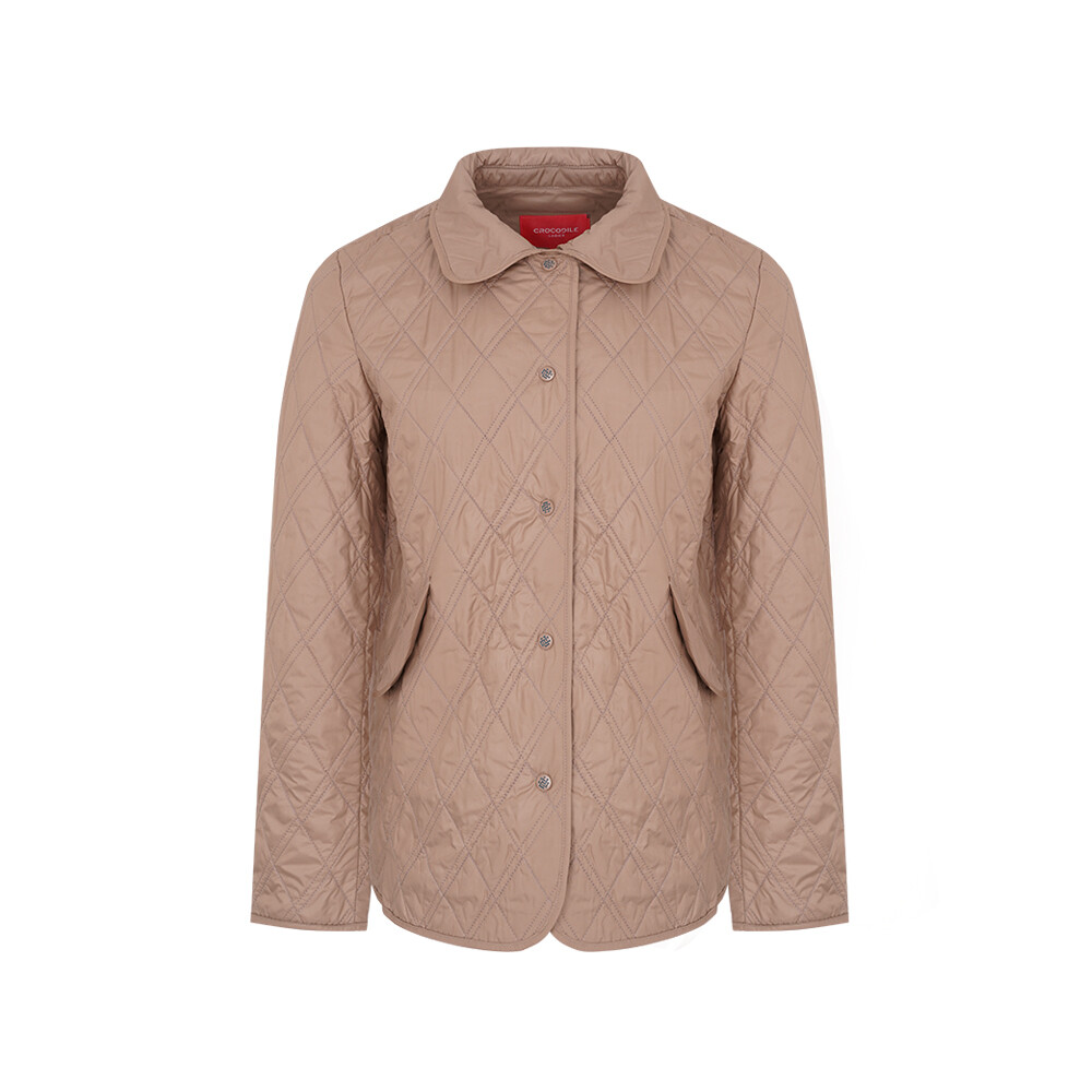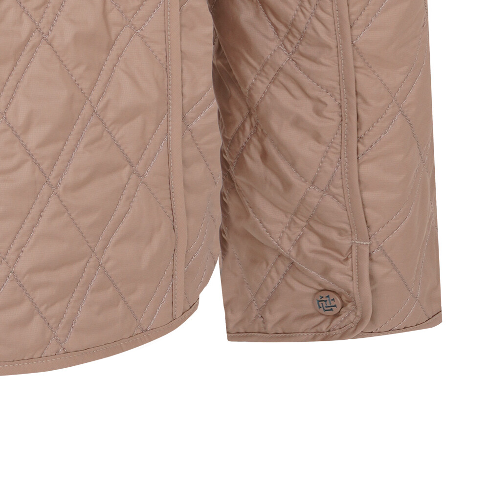 솔리드 겉감과 체크 안감을 함께 맞퀼팅한 변형다이아 1온스 자켓형 숏패딩. 시즌 로고 스냅을 사용하여 고급스런 느낌을 더한 아이템.