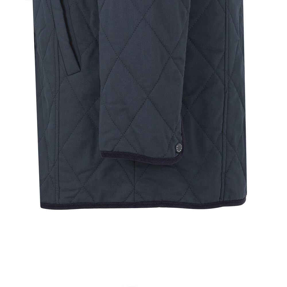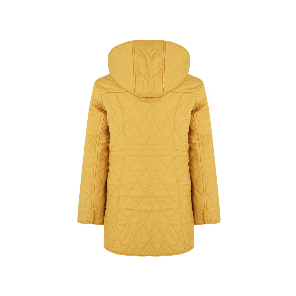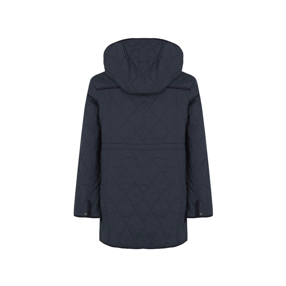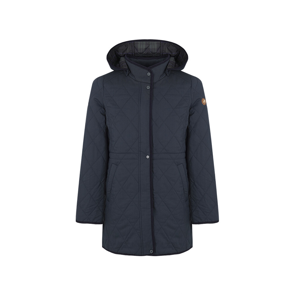 탈부착이 가능한 후드와 부드럽고 가벼운 면혼방의 소재로 2온스 다이아 맞퀼팅한 패딩 아이템. 안쪽에 체크 배색과 허리에 스트로우 기능이 있어 다양한 코디네이션이 가능한 스타일.