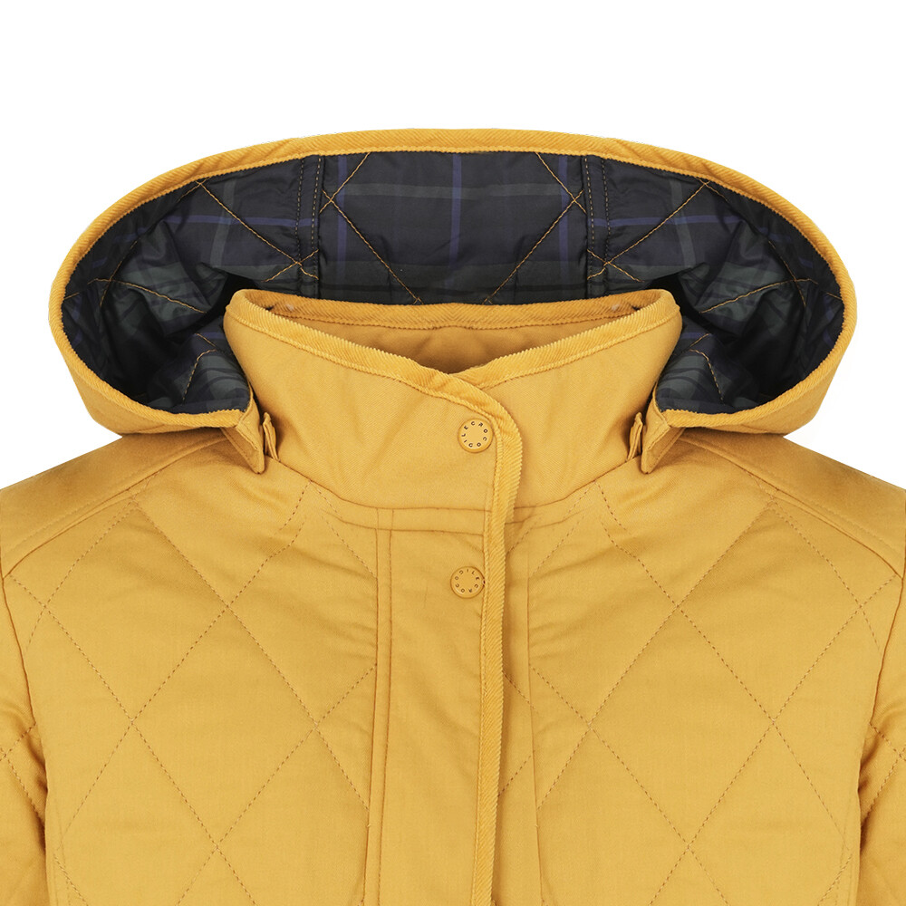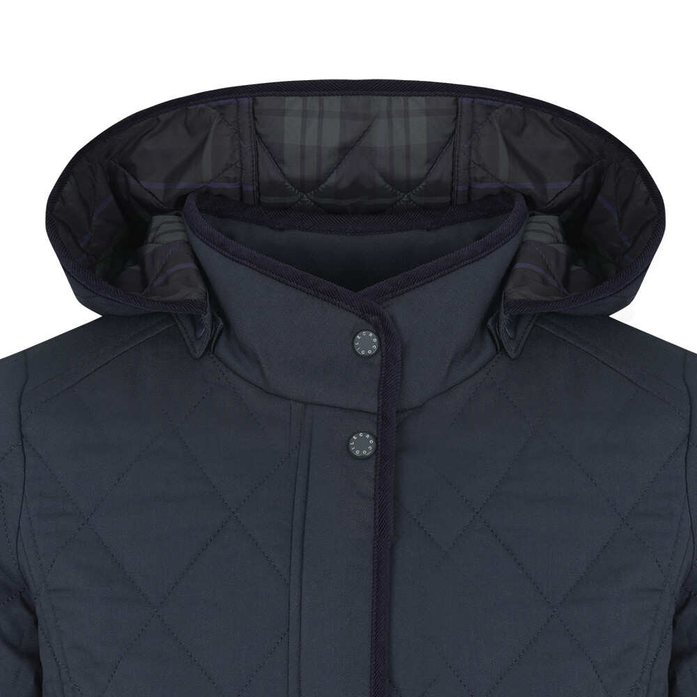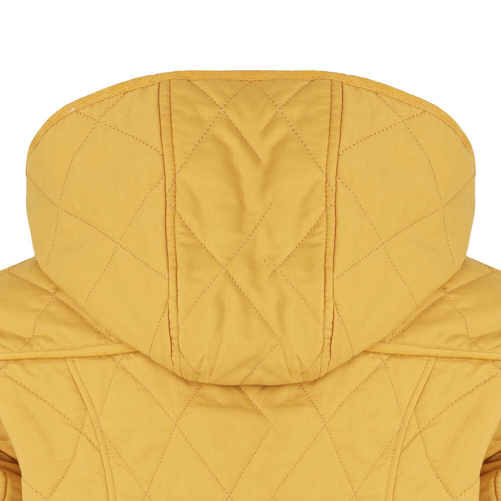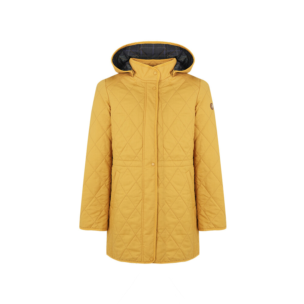 탈부착이 가능한 후드와 부드럽고 가벼운 면혼방의 소재로 2온스 다이아 맞퀼팅한 패딩 아이템. 안쪽에 체크 배색과 허리에 스트로우 기능이 있어 다양한 코디네이션이 가능한 스타일.
