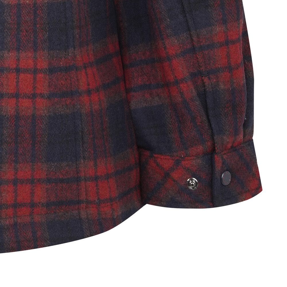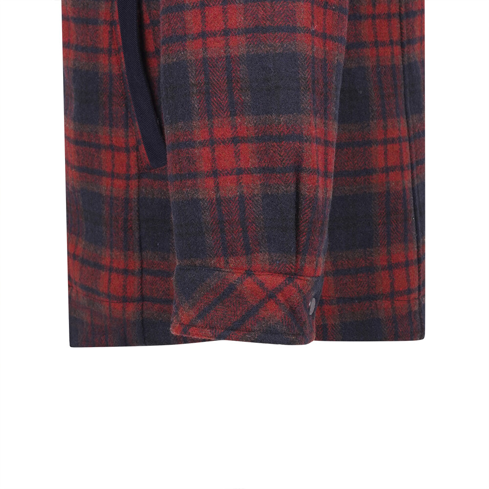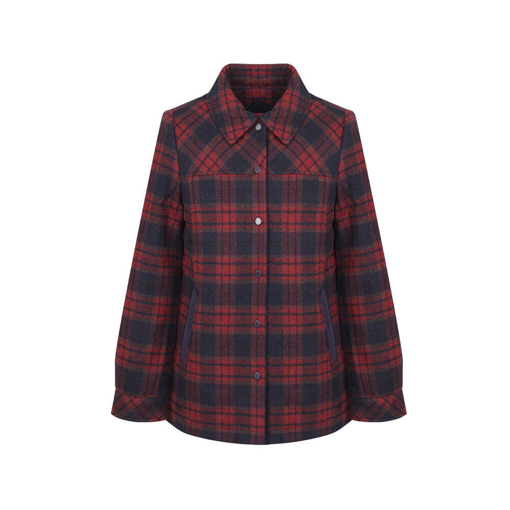 보온성이 좋은 울 블랜드 원단의 캐주얼한 타탄체크 자켓. 솔리드 배색이 포인트로 캐주얼함을 더하였으며 안쪽 충전재로 간절기에 가볍게 착용하기 좋은 스타일.