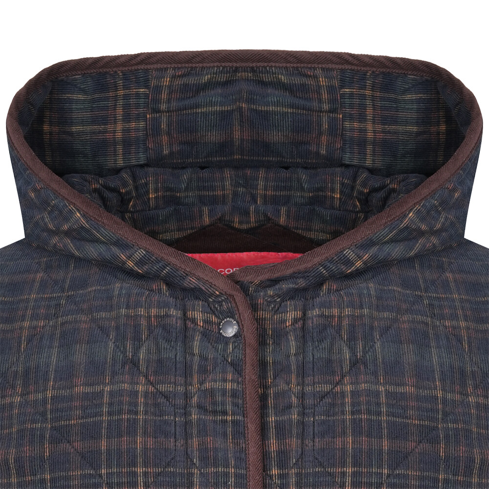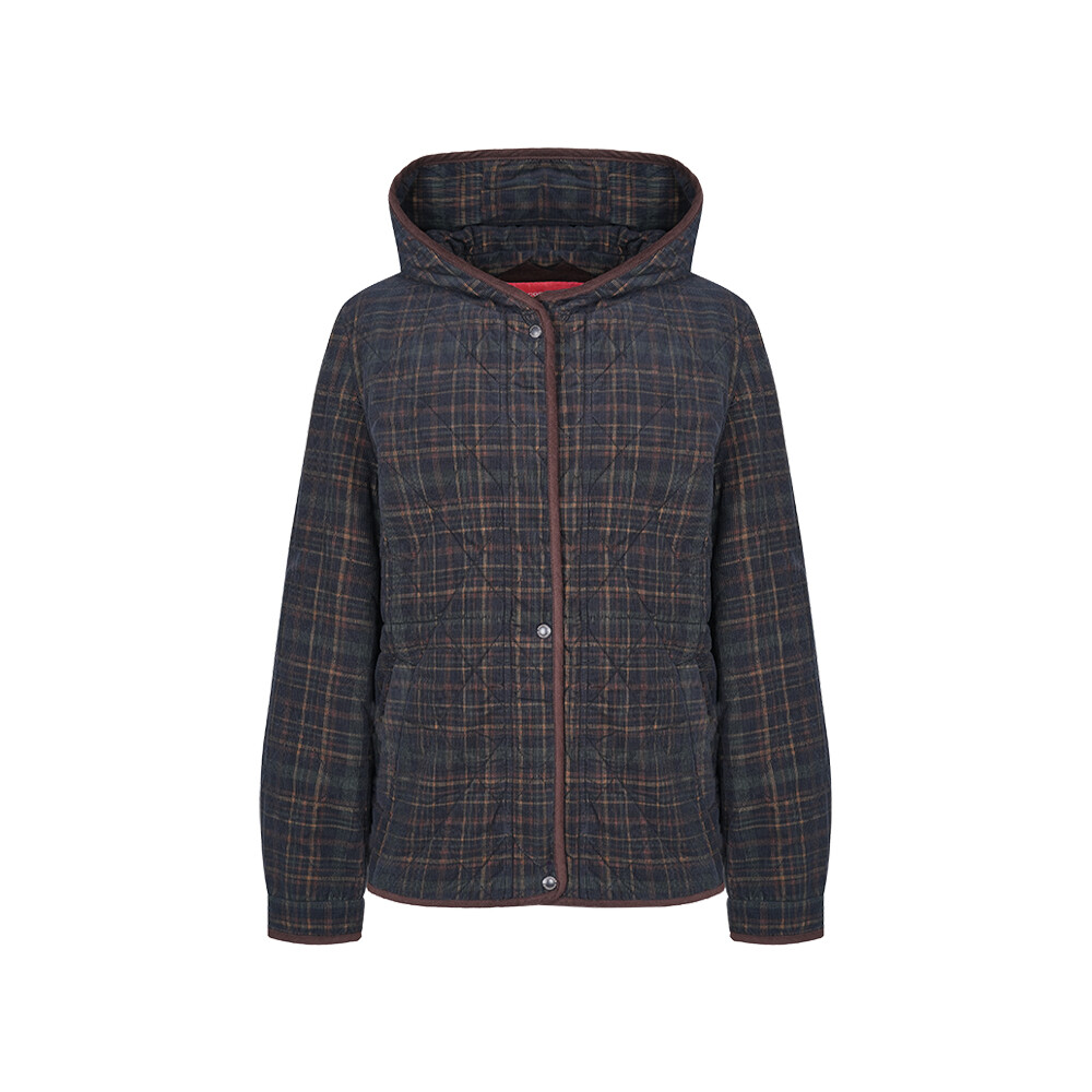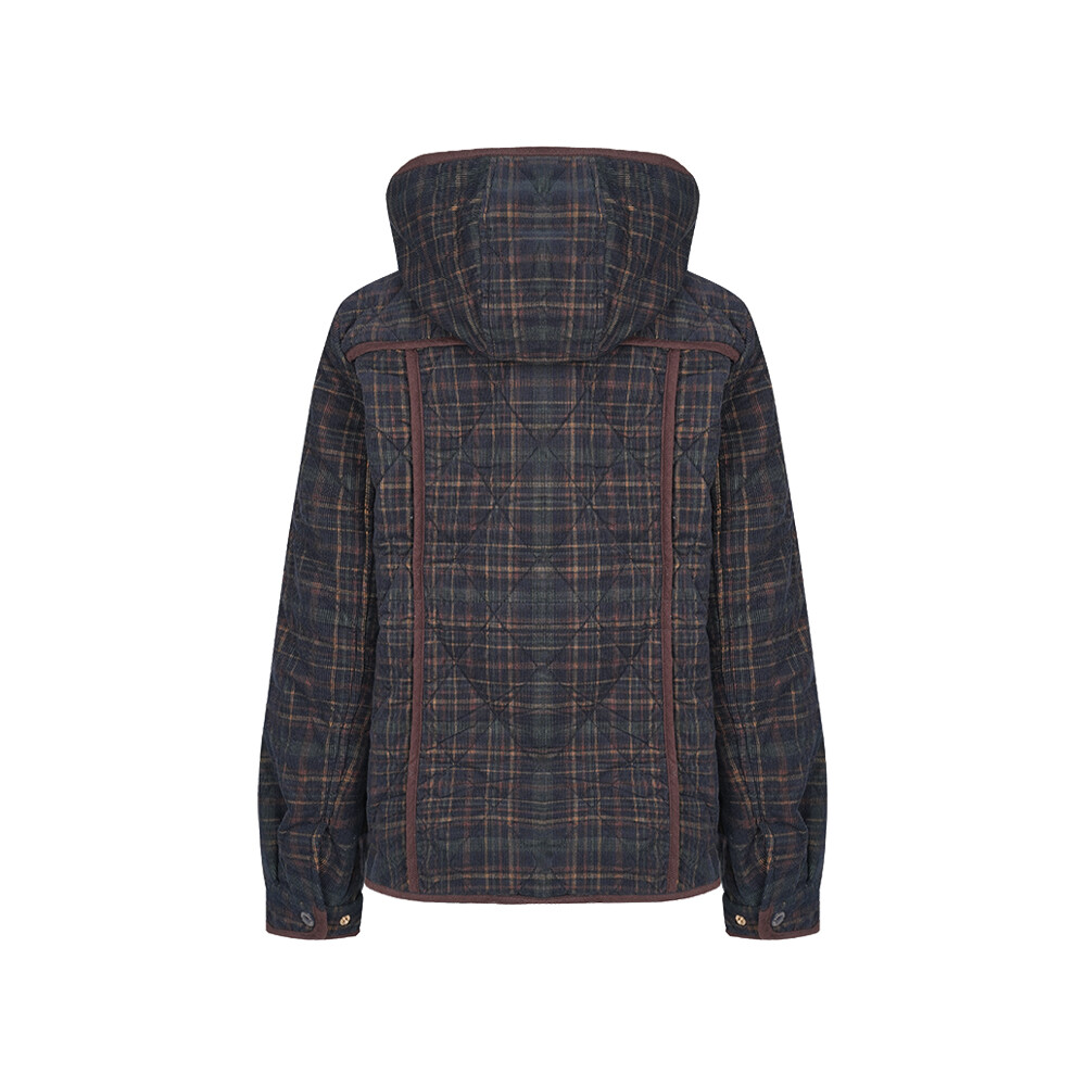 포근한 코듀로이 체크소재에 다이아 퀼팅을 누벼 캐주얼함을 살린 패딩점퍼. 밝은 톤의 배색 안감과 배색 해리가 포인트이며 허리에 스트로우 기능을 넣어 원하는 실루엣으로 조절해서 착용하기 좋은 아이템.