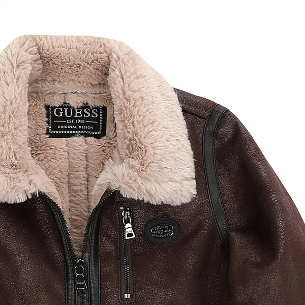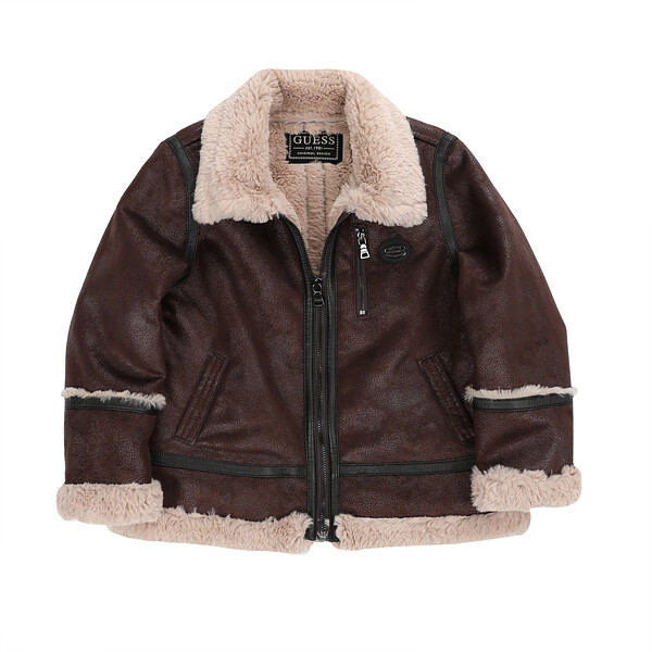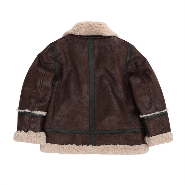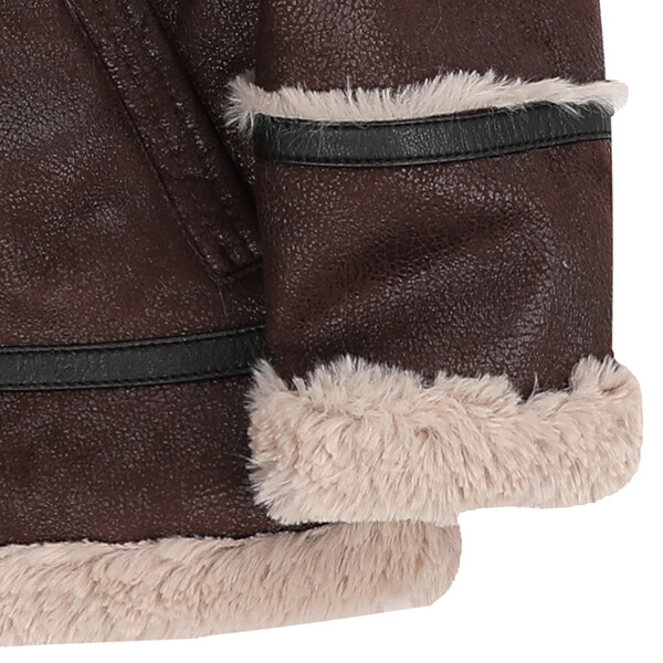 - 브라운 스웨이드와 소프트한 아이보리 퍼 본딩의 에코레더 무스탕