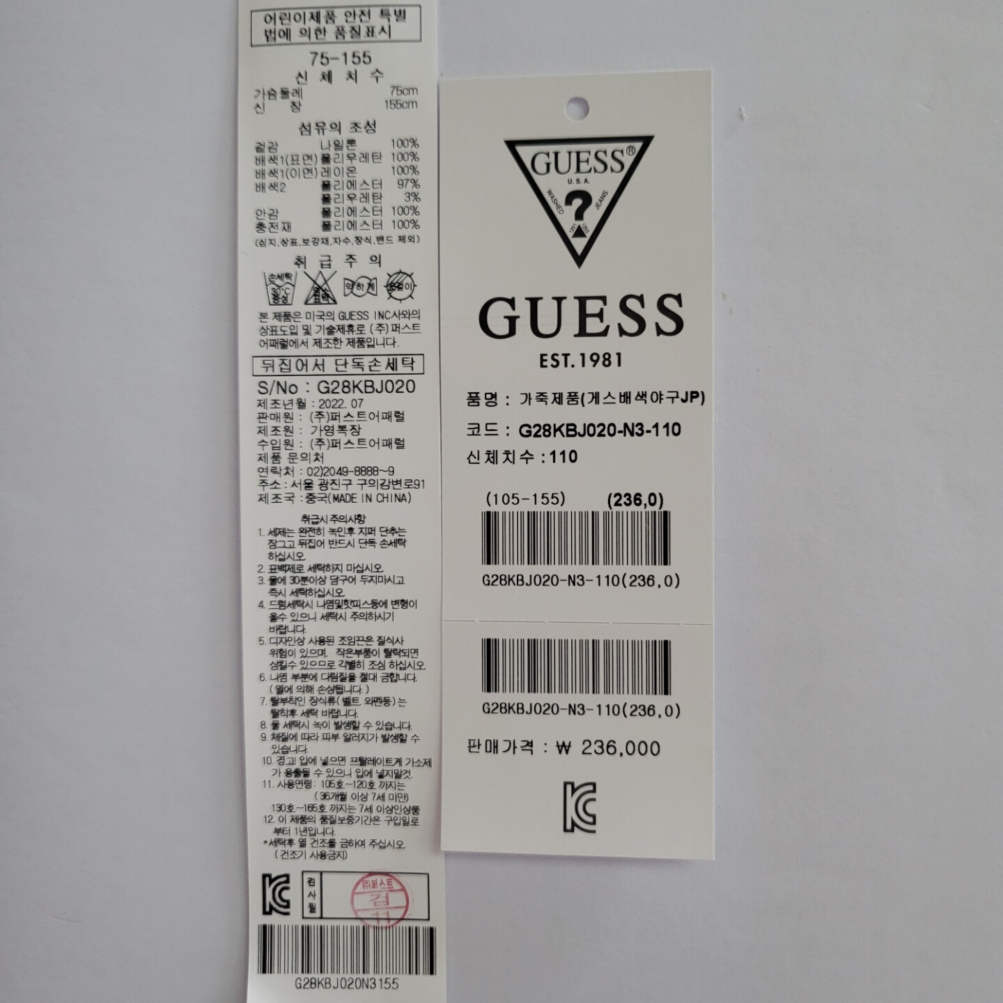 * 혼용율: 겉감 : 나일론 100% 배색1(표면) : 폴리우레탄 100% (이면) : 레이온 100% 배색2 : 폴리에스터 97% 폴리우레탄 3% 안감 : 폴리에스터 100% 충전재 : 폴리에스터 100%