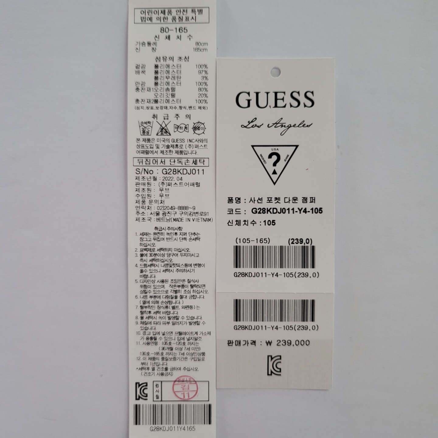 * 혼용율: 겉감 : 폴리에스터 100% 배색 : 폴리에스터 97% 폴리우레탄 3% 안감 : 폴리에스터 100% 충전재1 : 오리솜털 80% 오리깃털 20% 충전재2 : 촐리에스터 100%