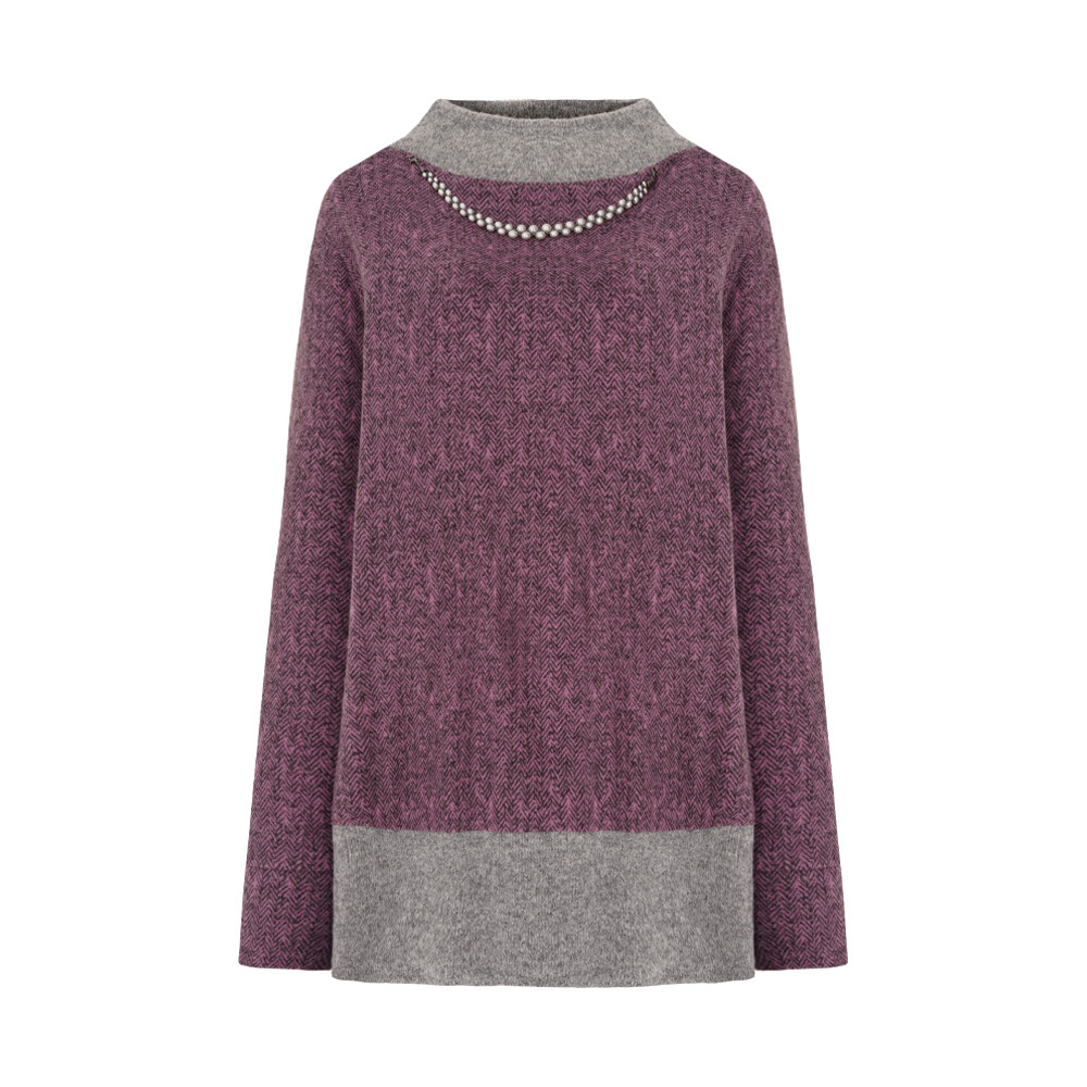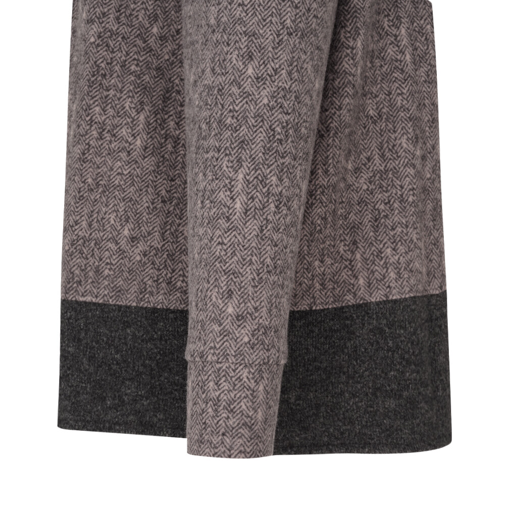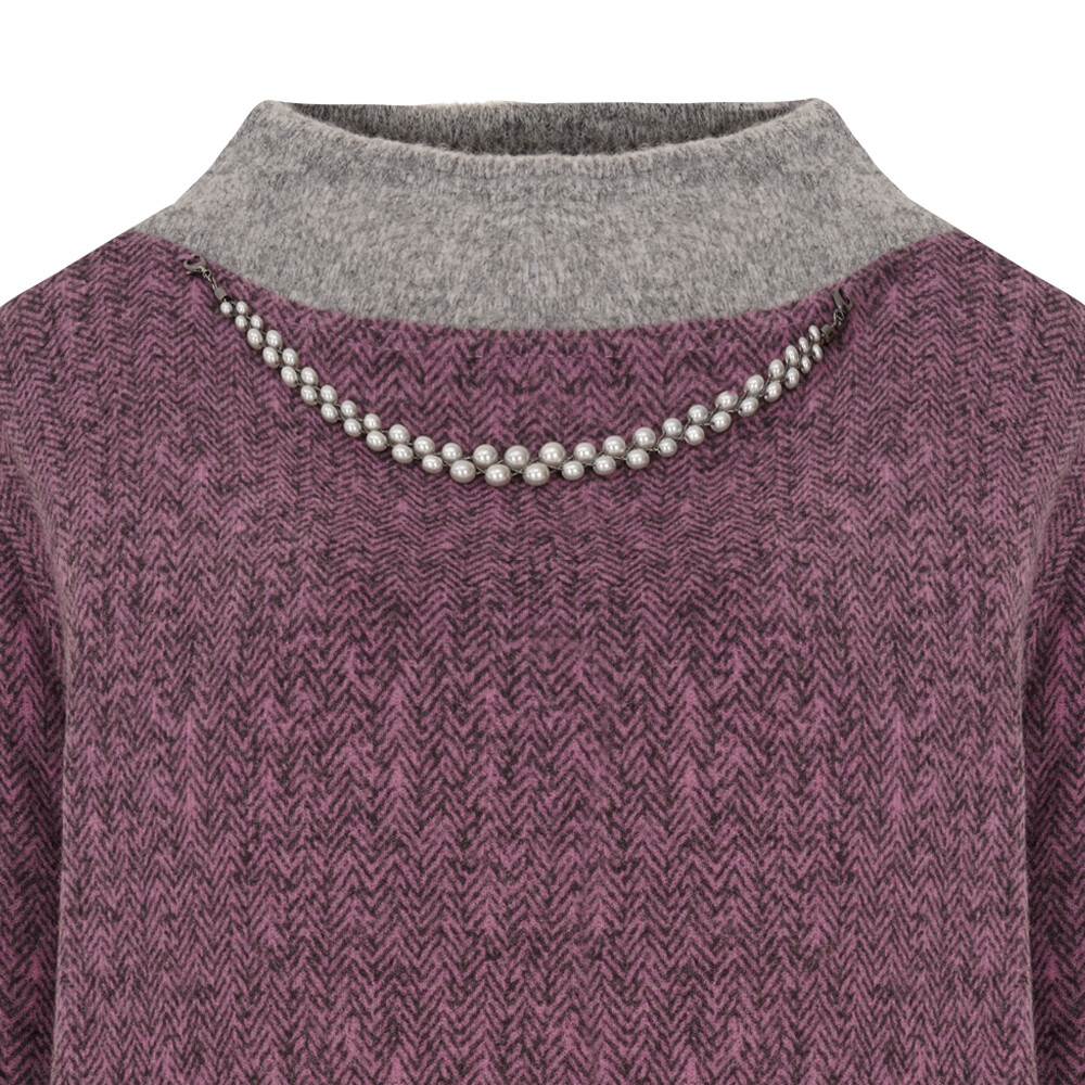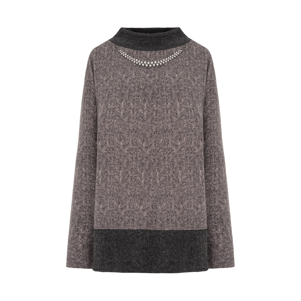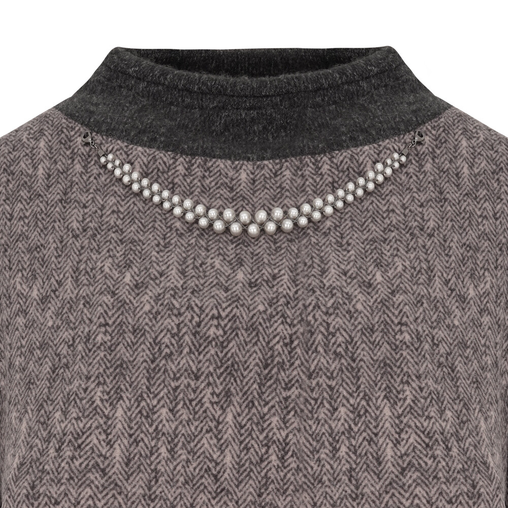 헤링본 프린트가 고급스러우며 네크진주장식이 여성스럽고 화사하게 코디 가능한 아이템입니다