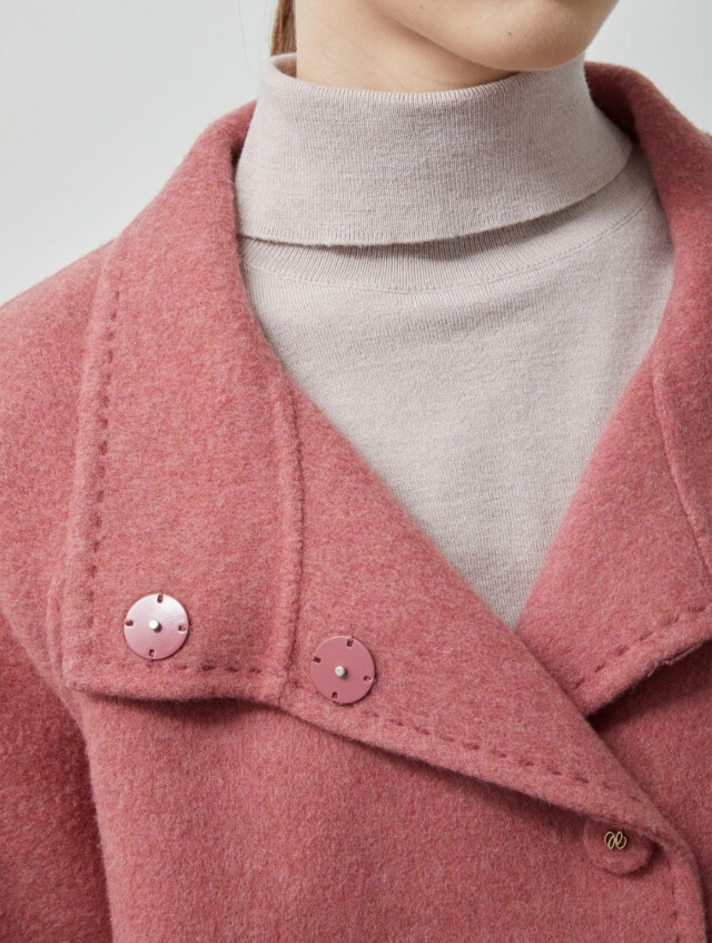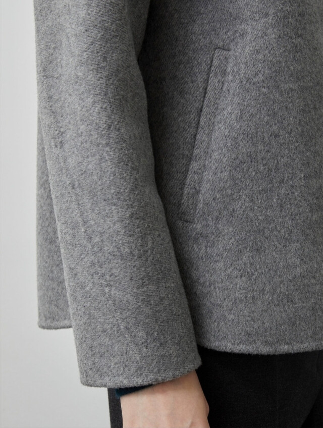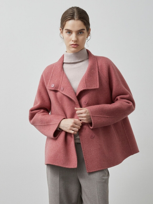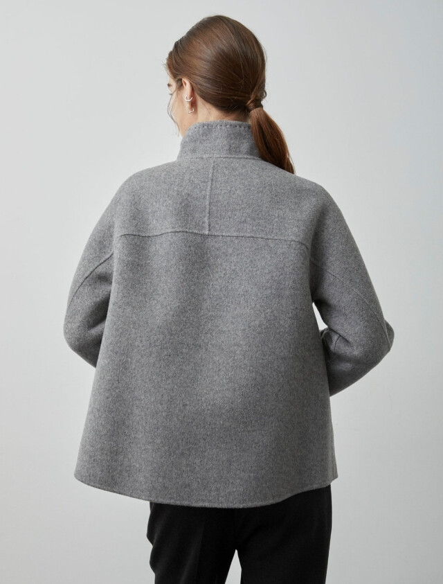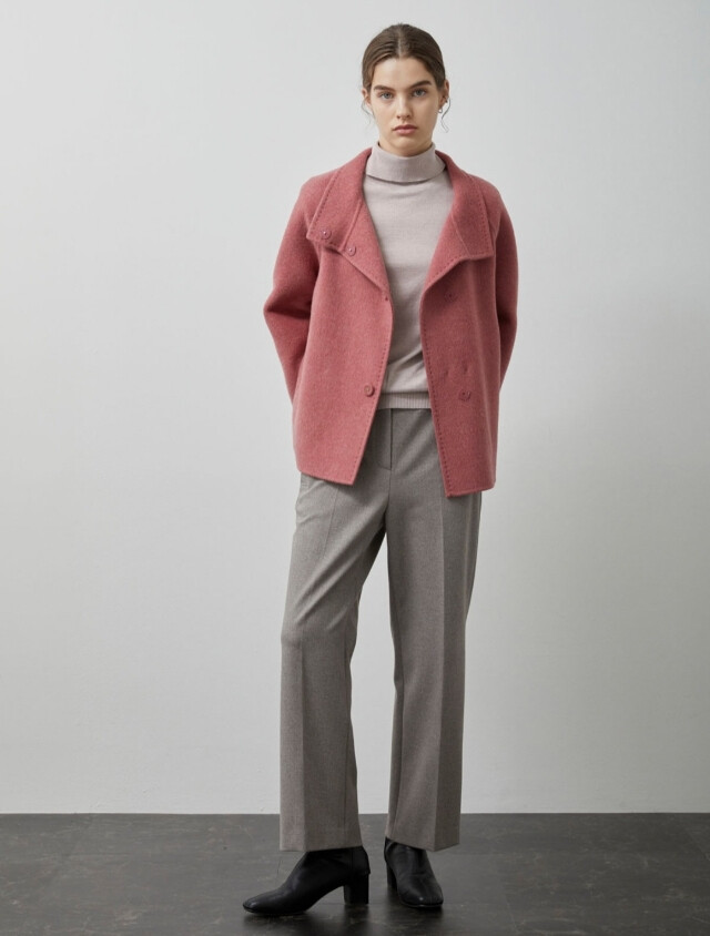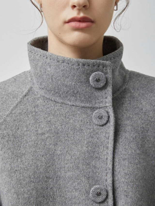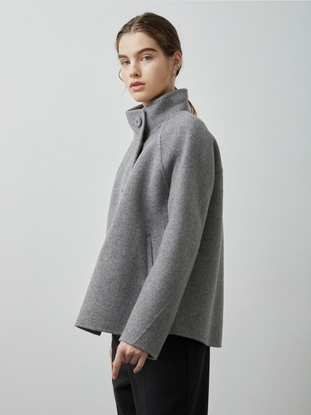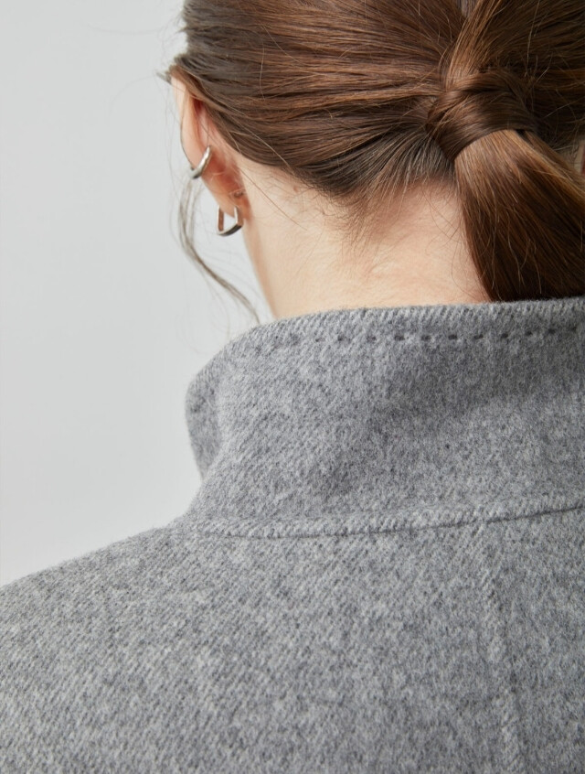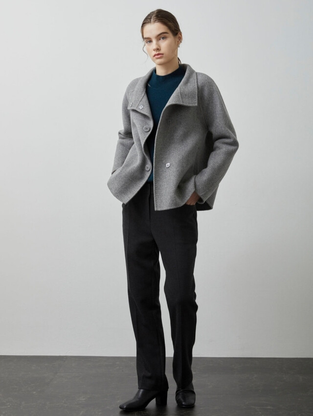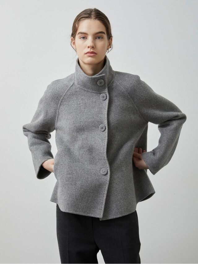 루즈한 세미A라인의 실루엣과 하이넥 디자인이