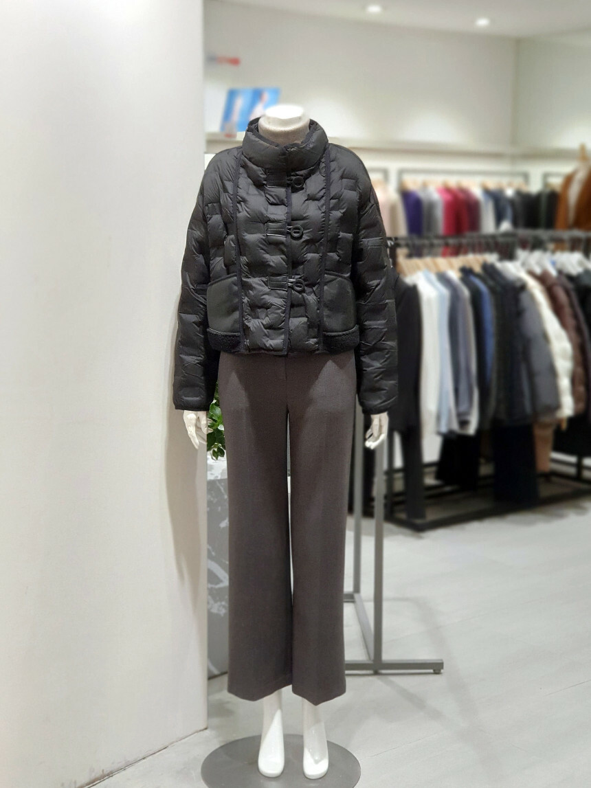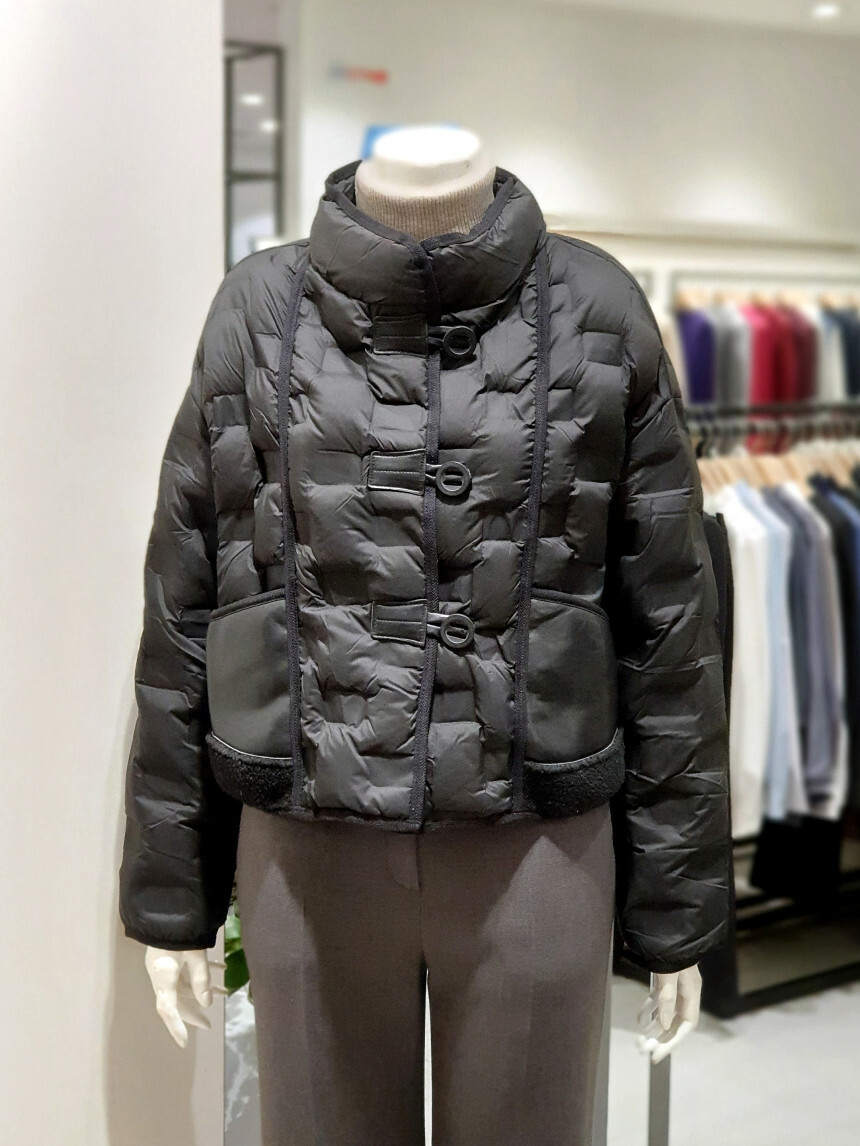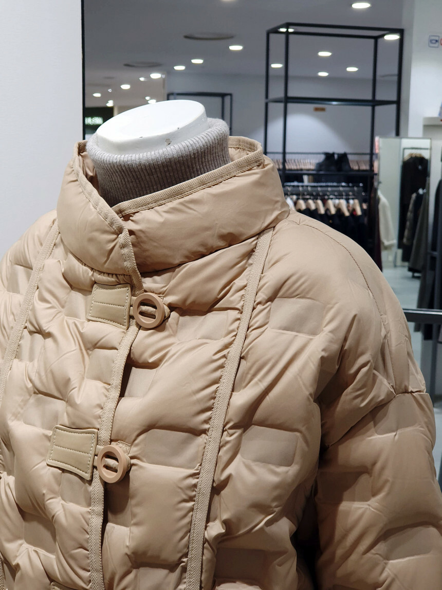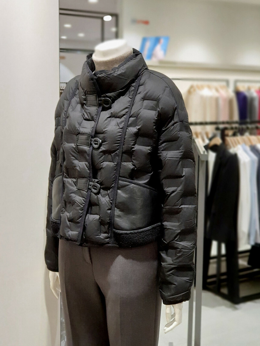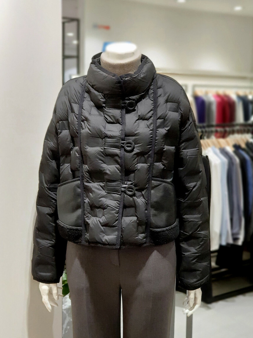 여밈 라인 토글 버튼 클로징이 멋스러운 다운재킷입니다.