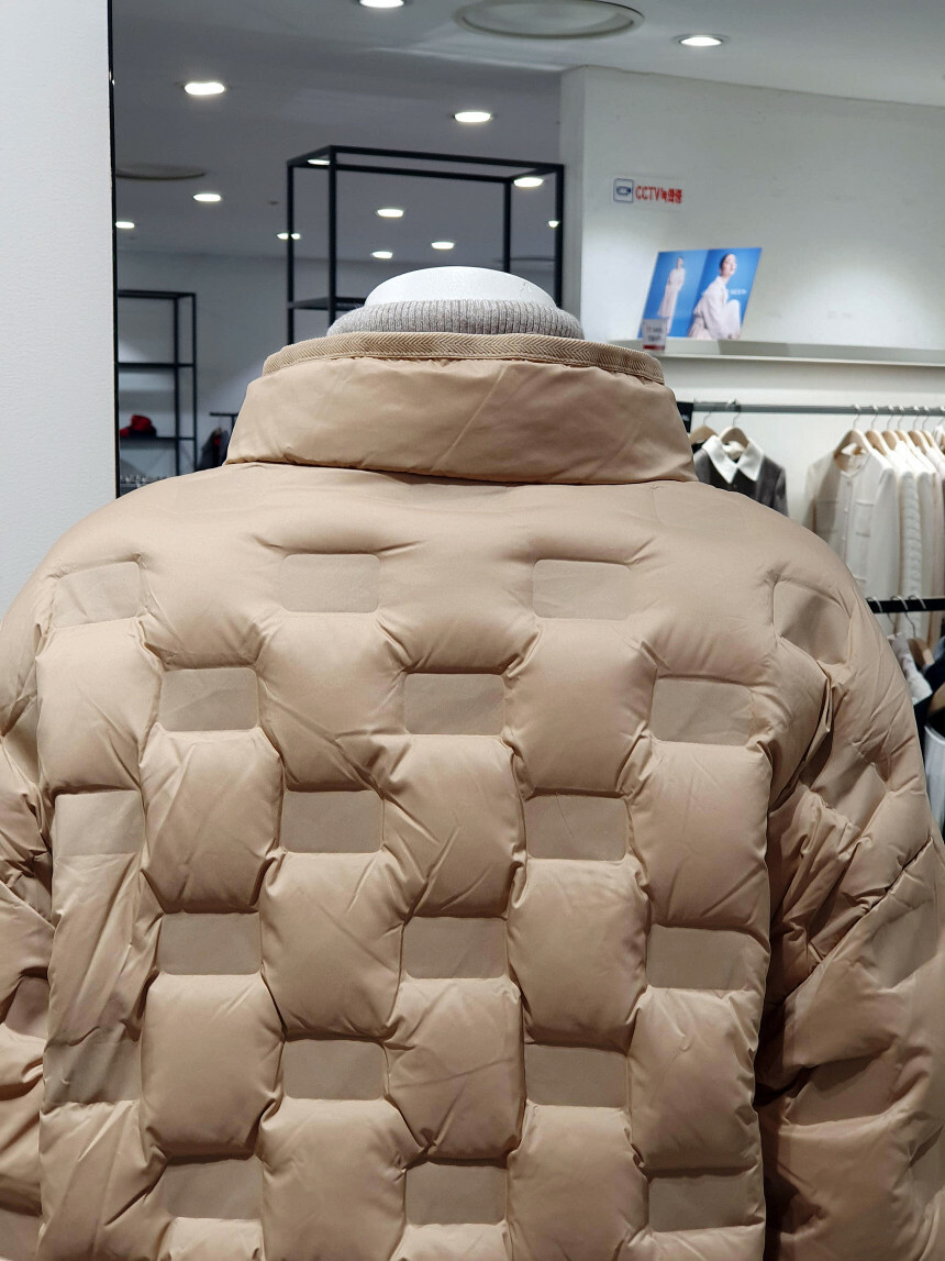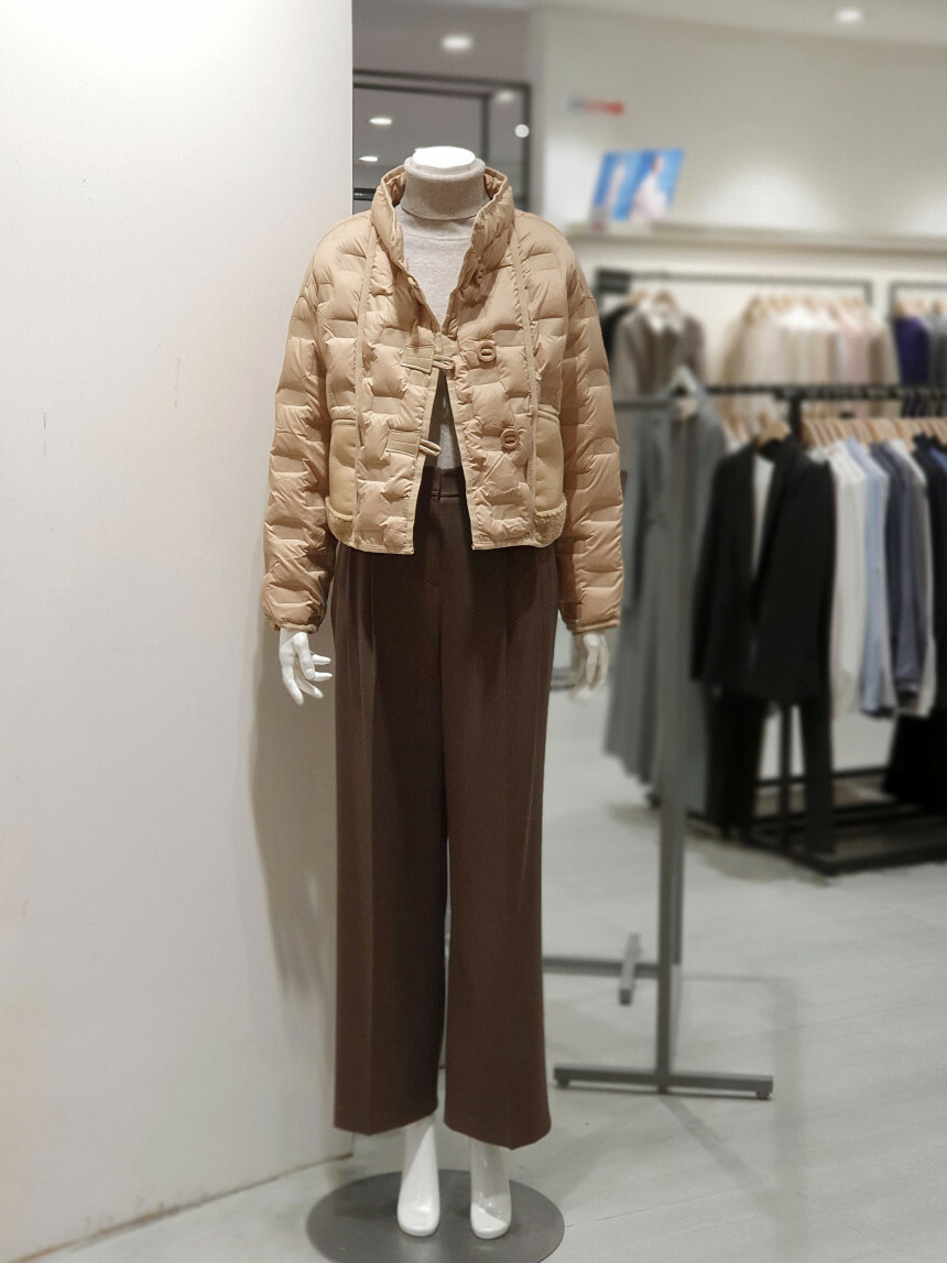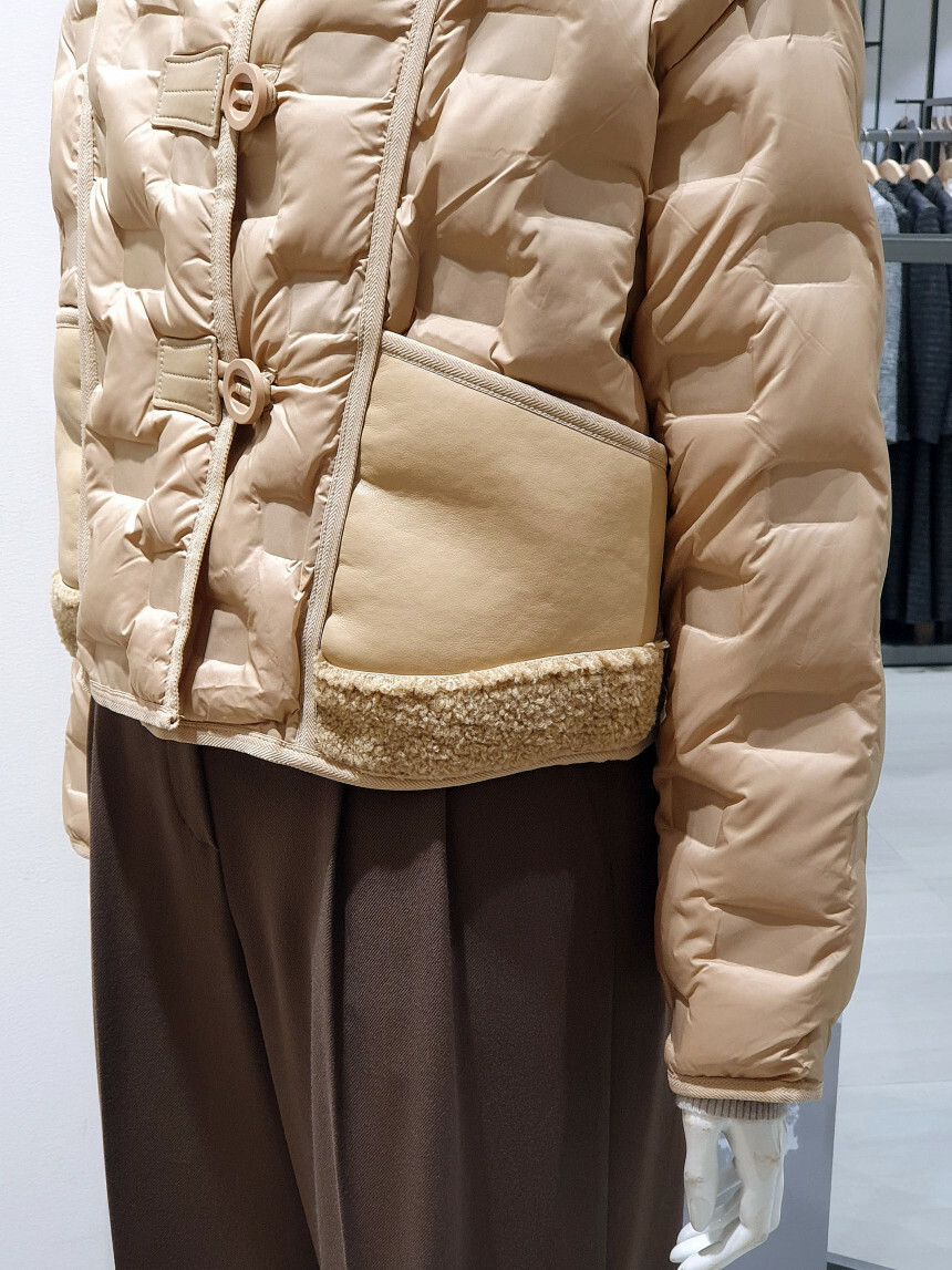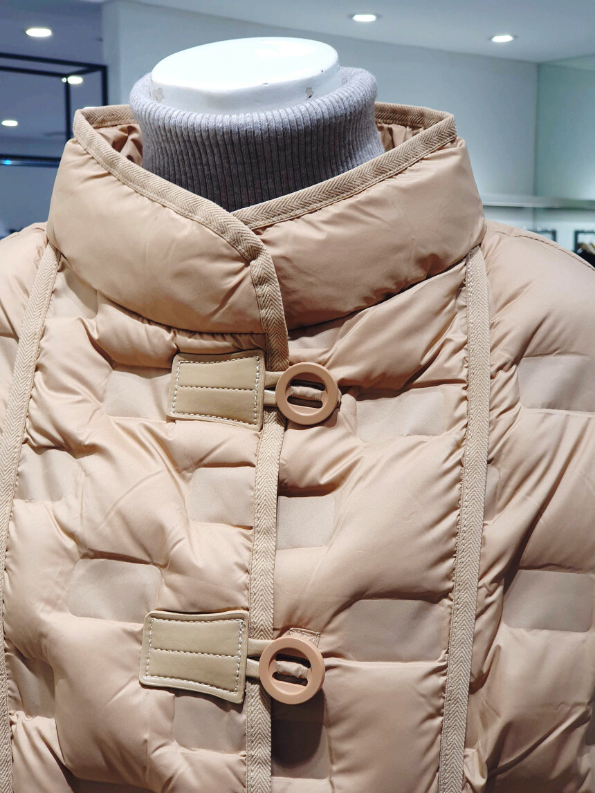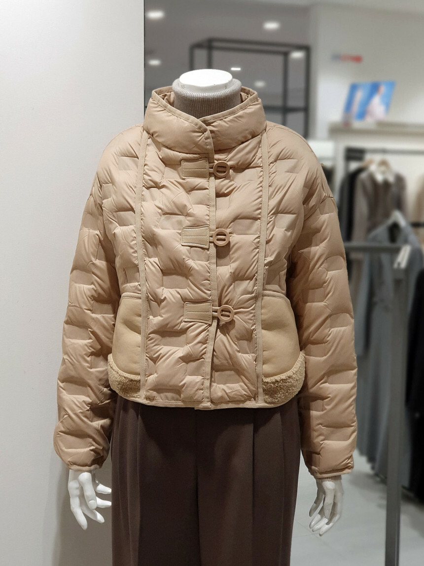 여밈 라인 토글 버튼 클로징이 멋스러운 다운재킷입니다.