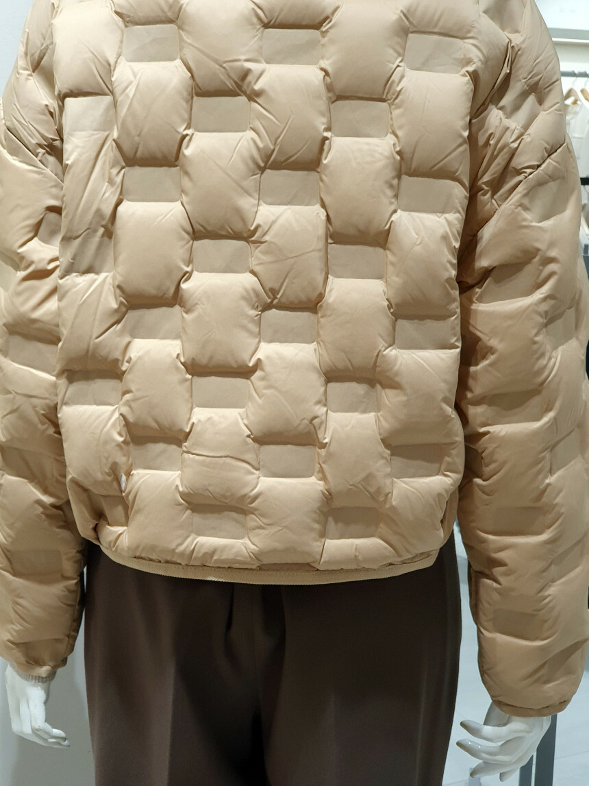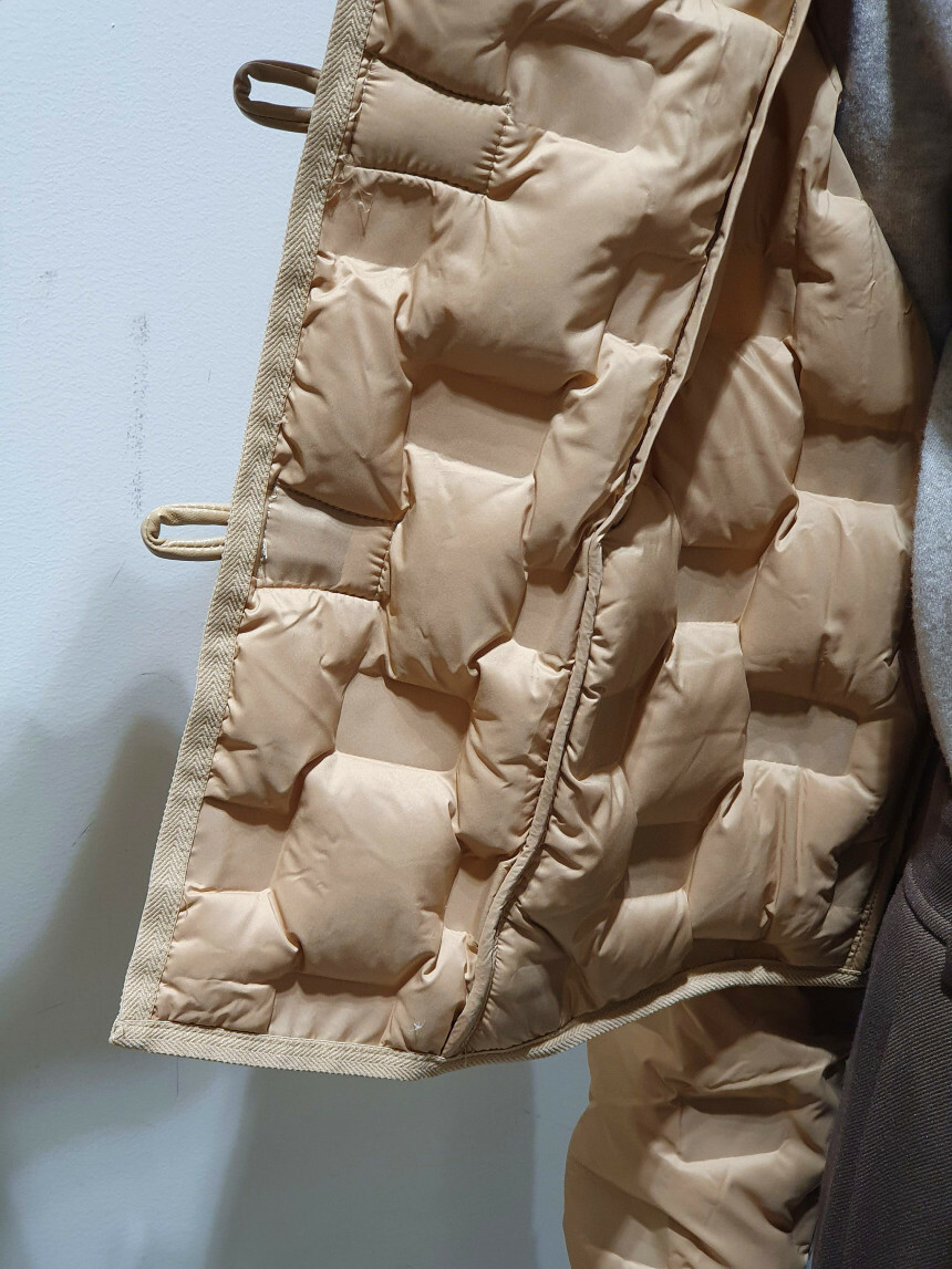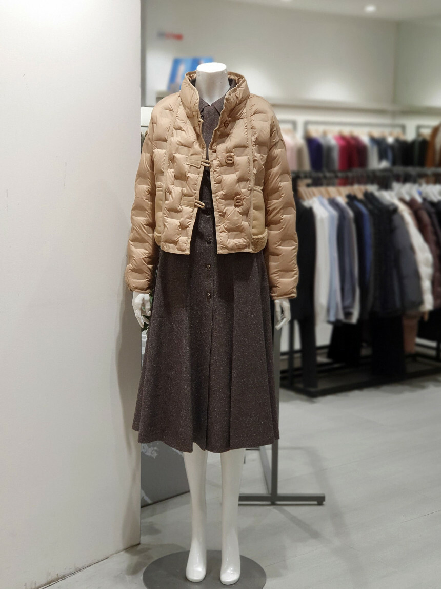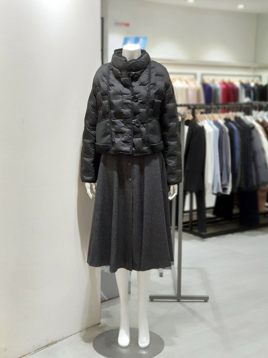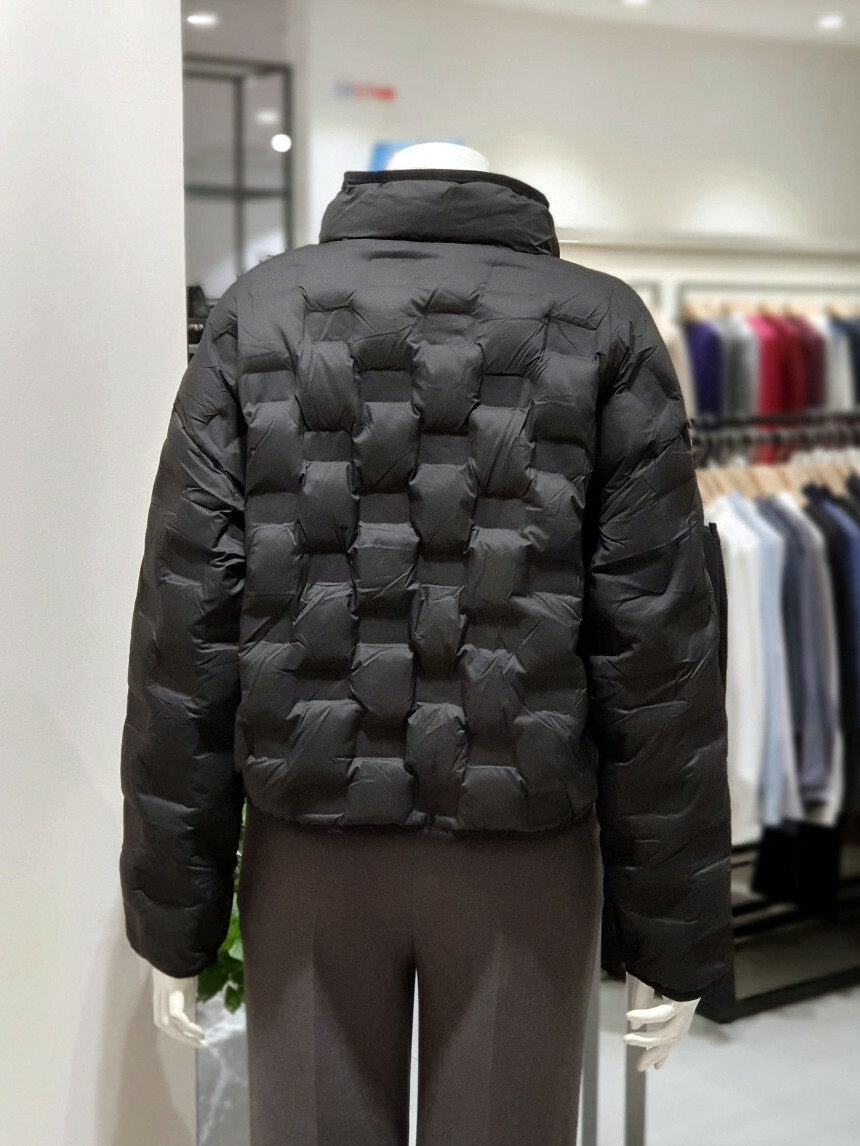 여밈 라인 토글 버튼 클로징이 멋스러운 다운재킷입니다.