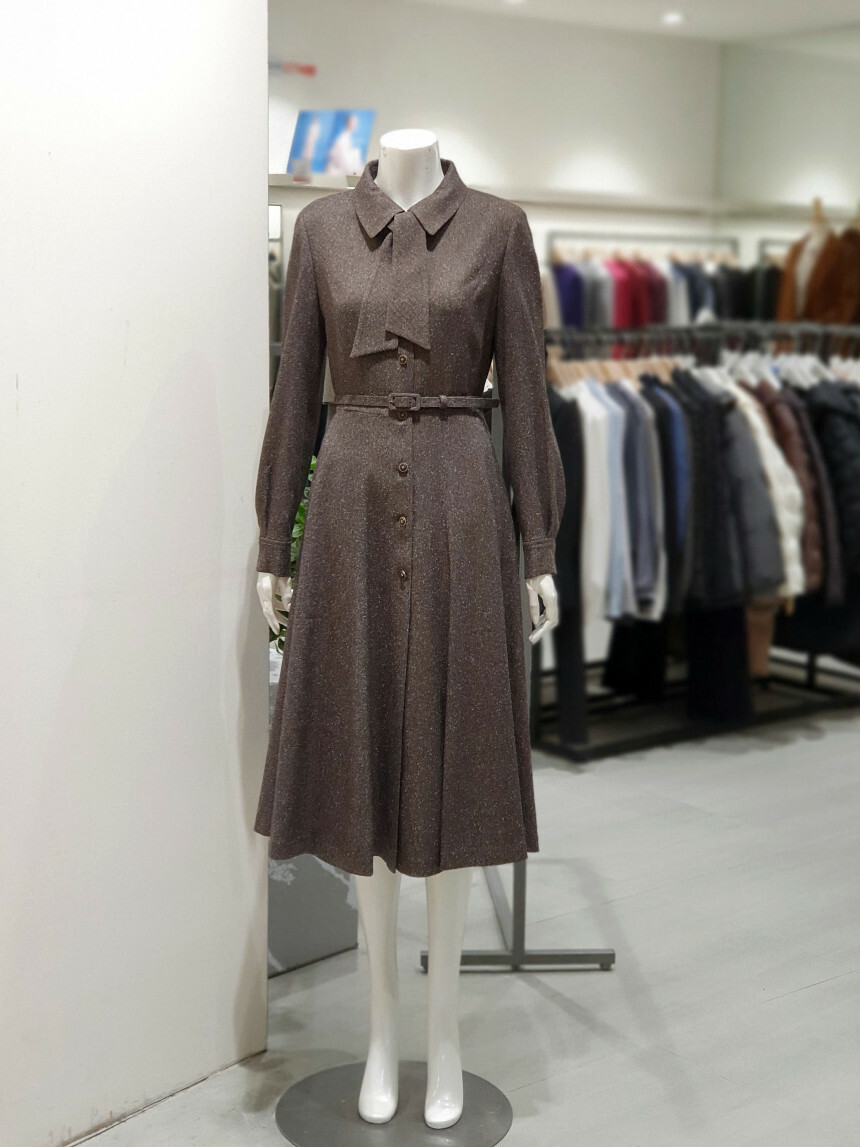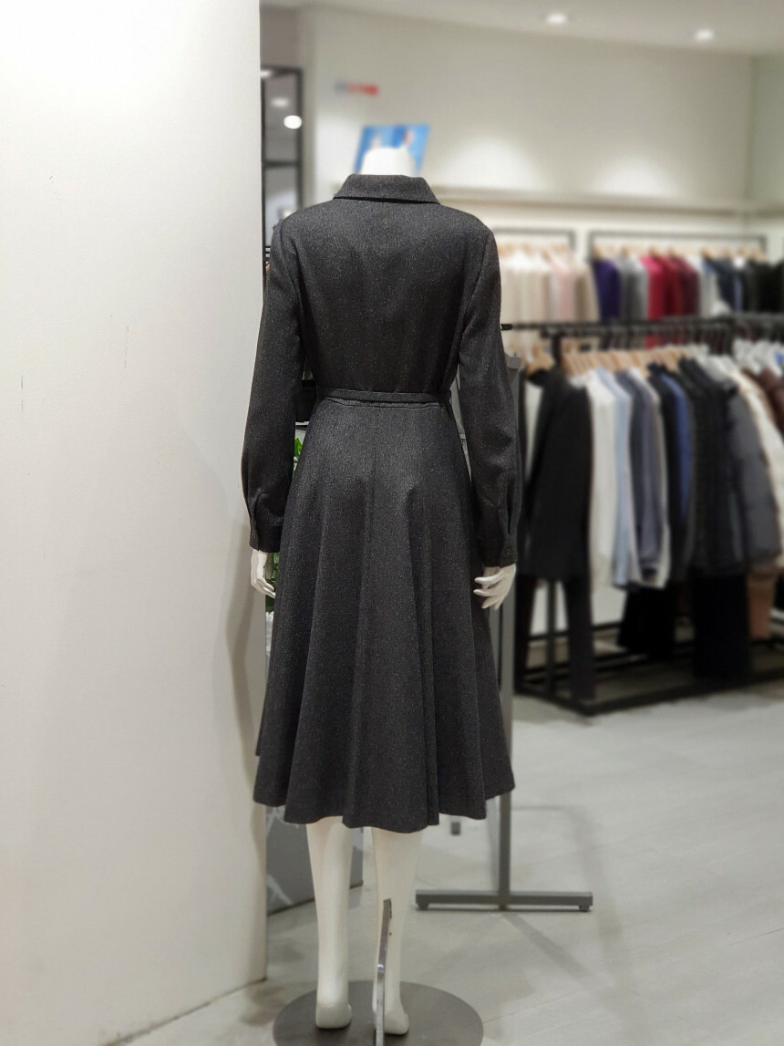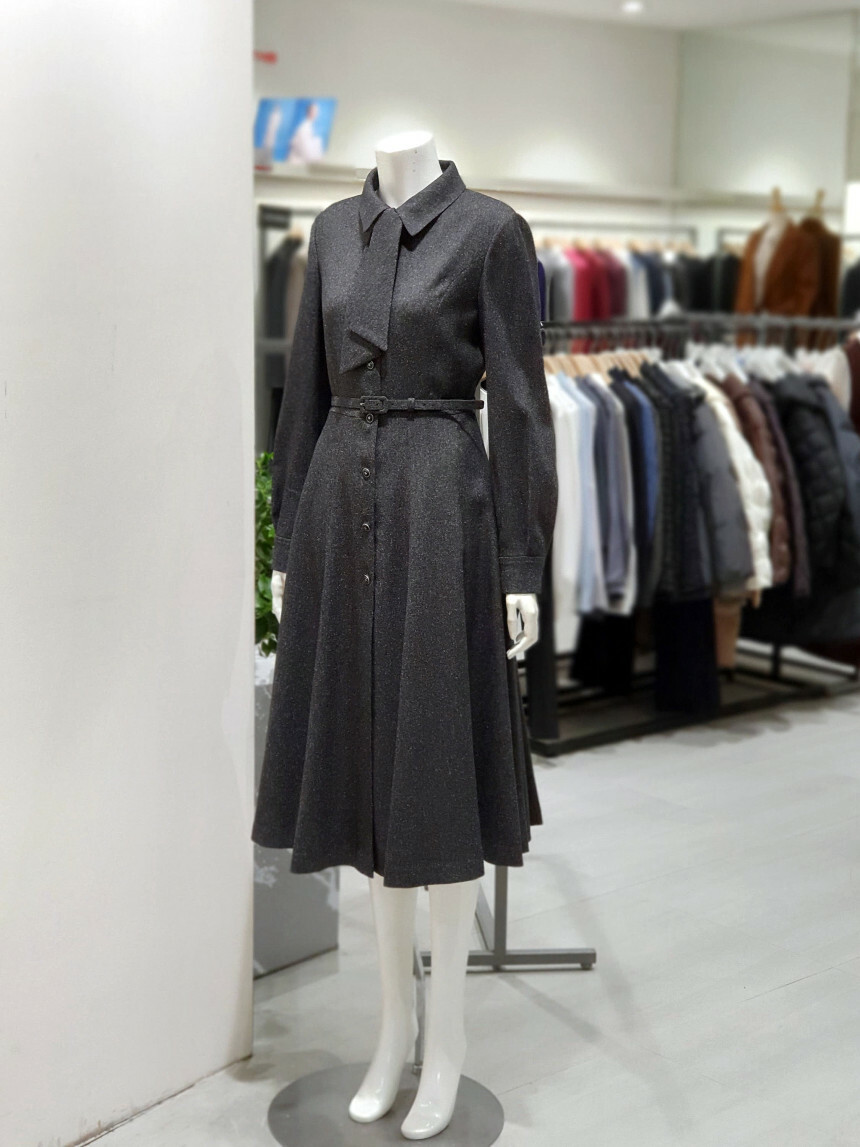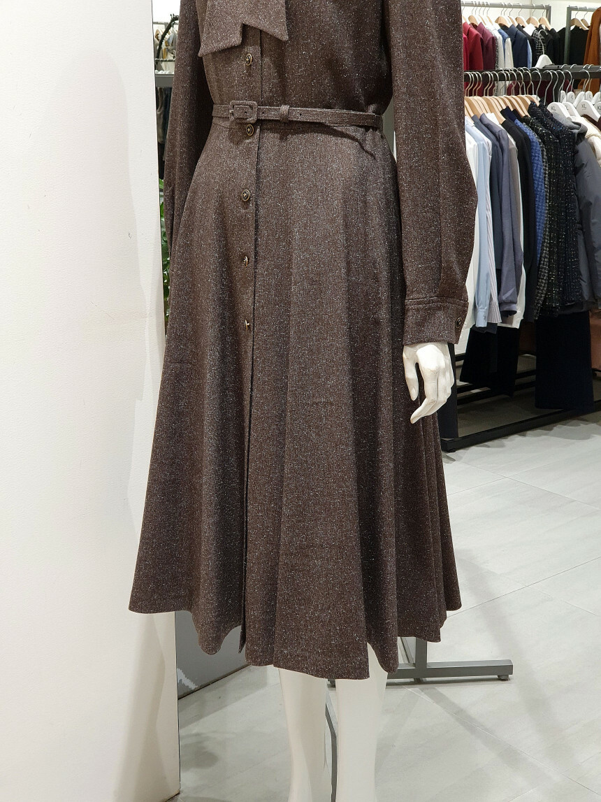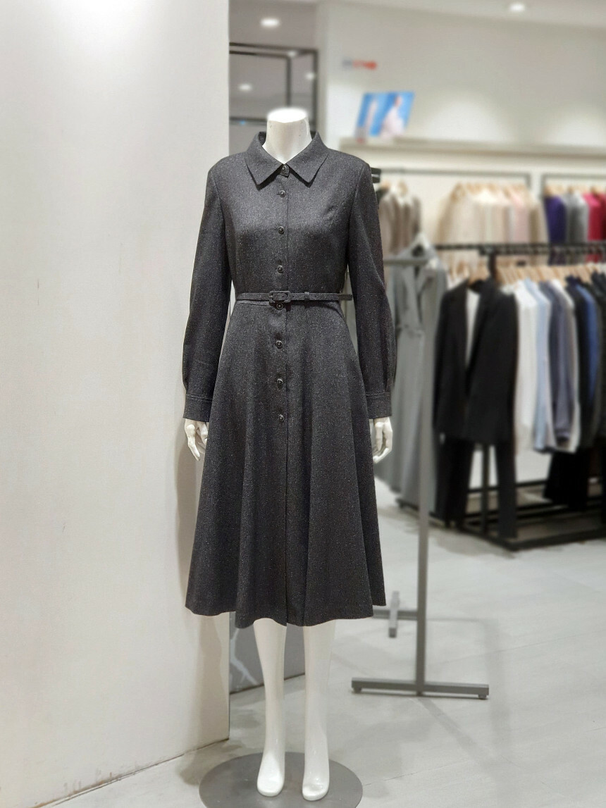 벨트로 허리선을 잡아주어 페미닌한 실루엣을 연출합니다.