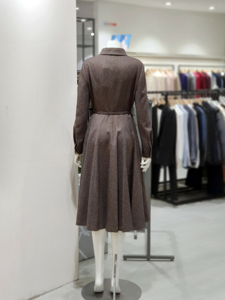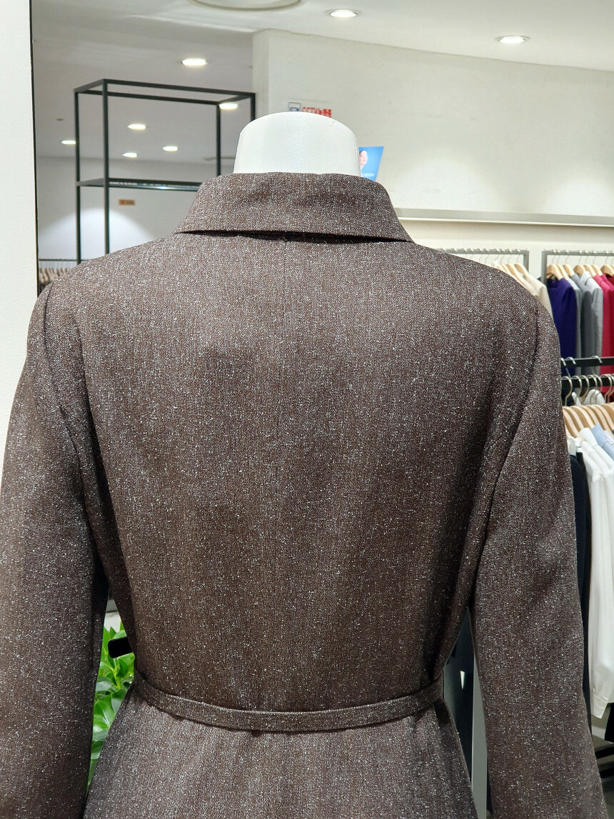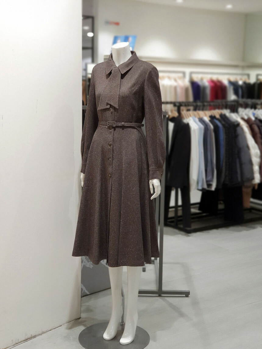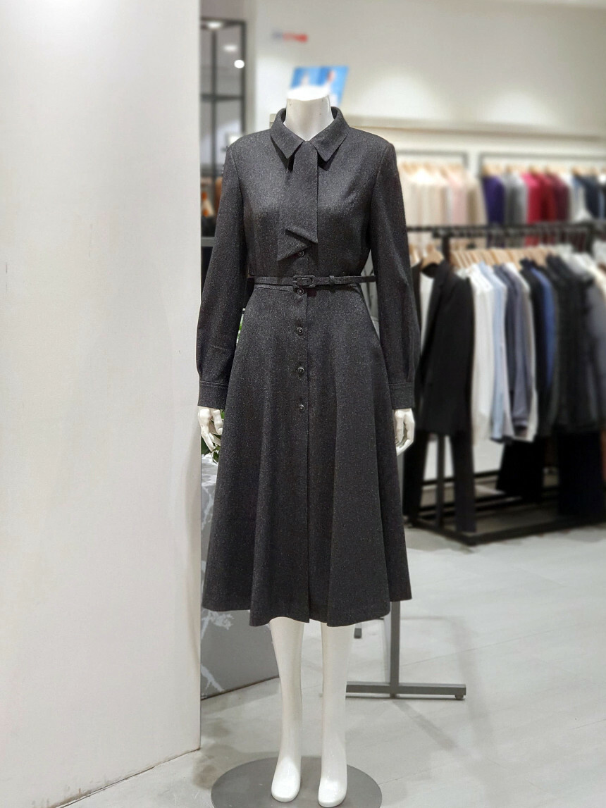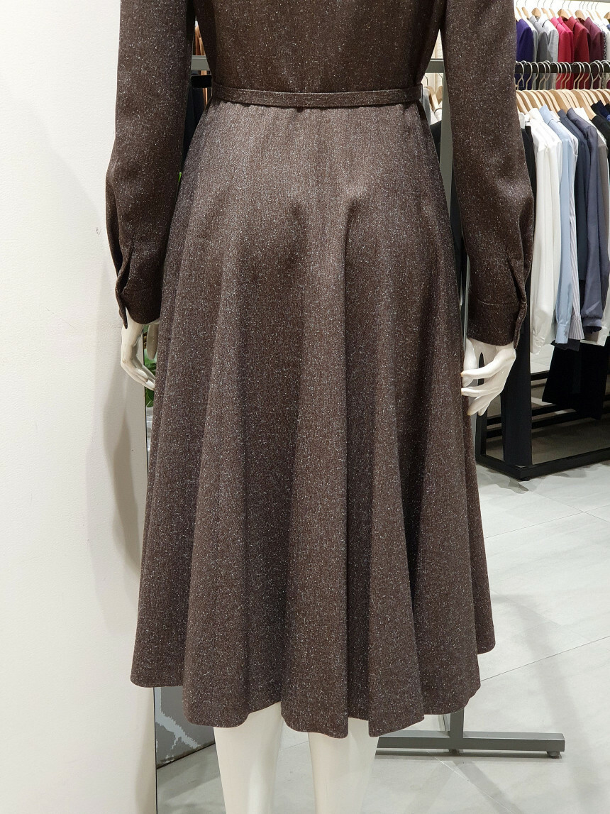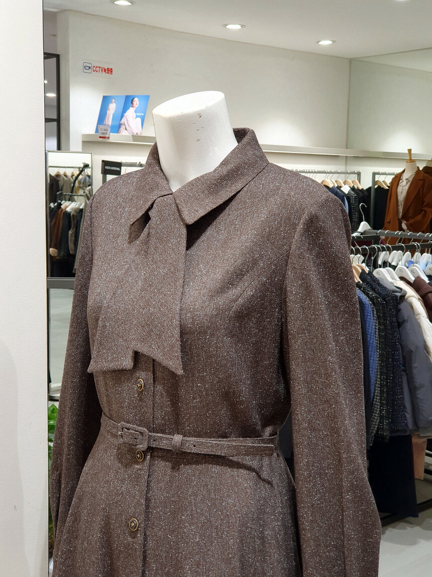 벨트로 허리선을 잡아주어 페미닌한 실루엣을 연출합니다.