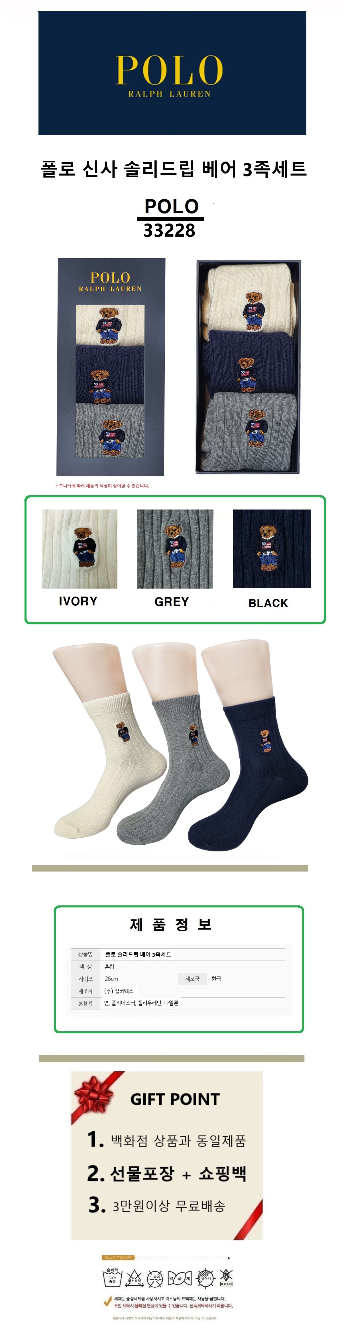 33228_신사 솔리드립 베어 3족세트