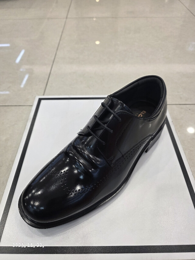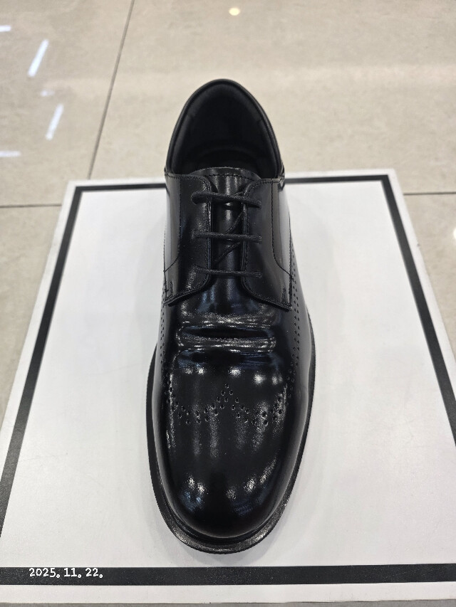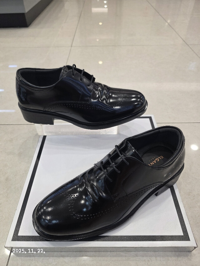 굽높이 약3cm의 높이에 천연소가죽소재를 사용하여 제작된 남성 광폭 정장구두입니다