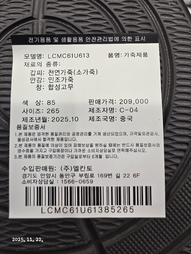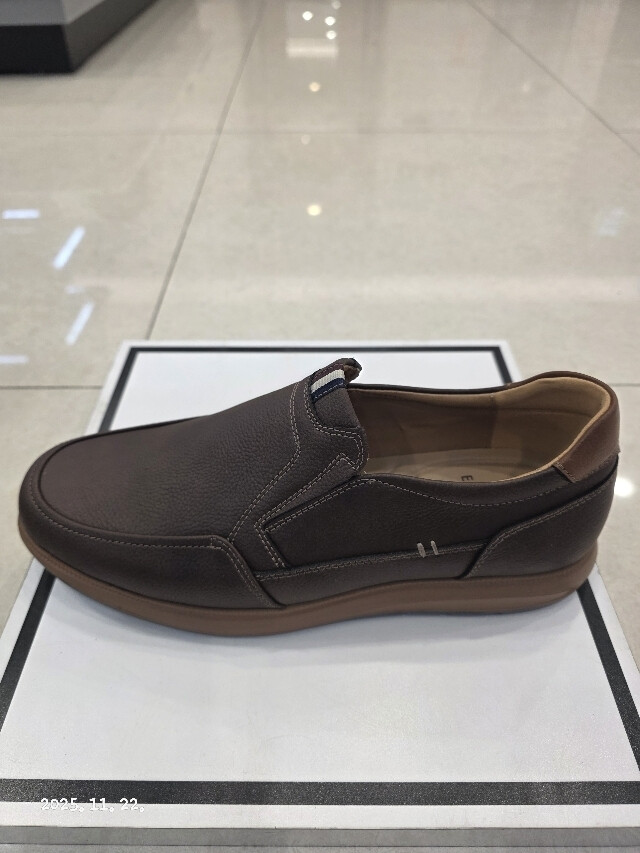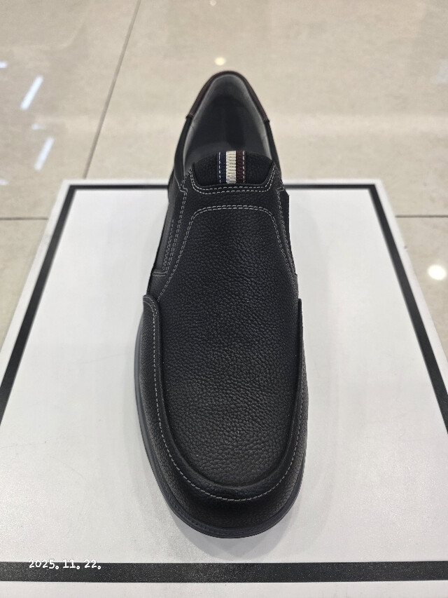 굽높이 약2.5cm의 높이에 천연소가죽소재를 특수공법으로 가공처리하여 제작된 남성 초경량 컴포트구두입니다