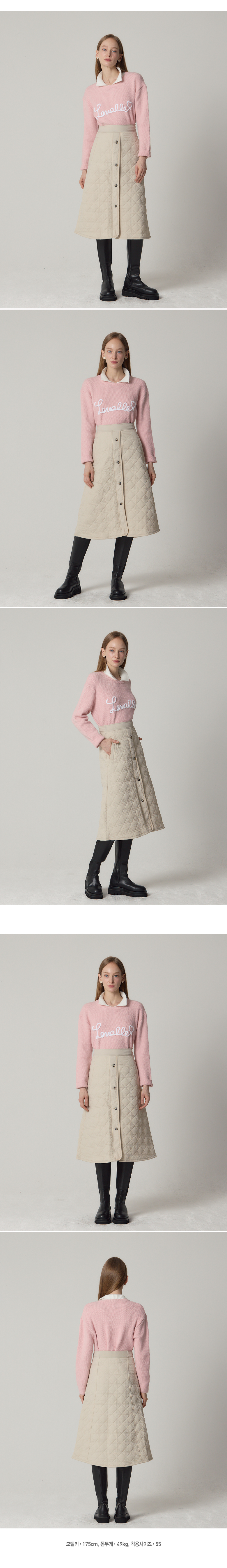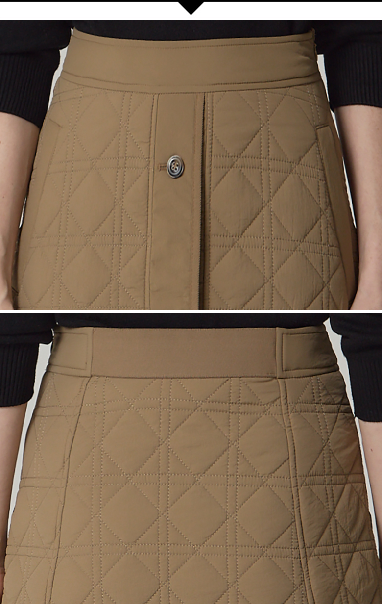 버튼 포인트가 있는 A라인 패딩 스커트입니다.