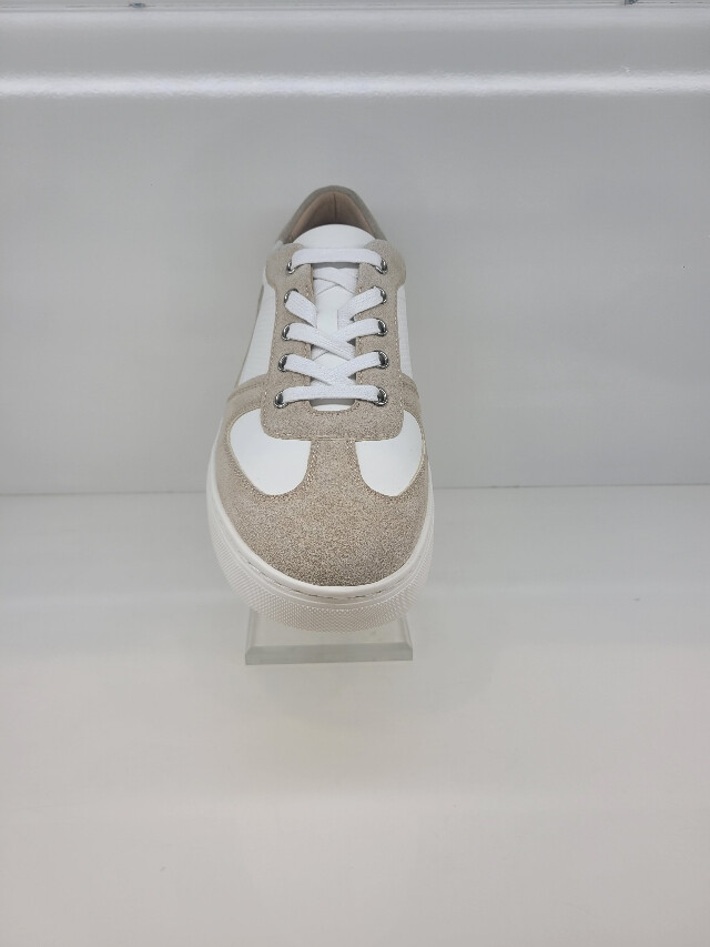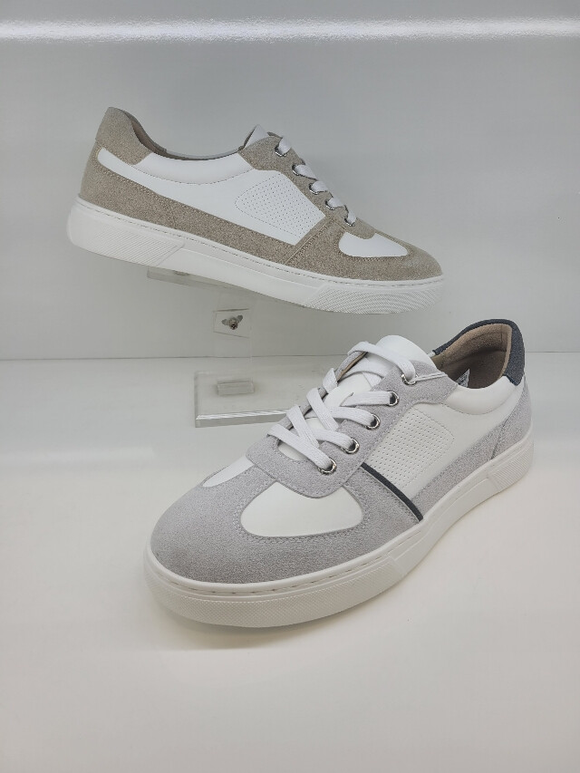 가죽이 굉장히 부드럽게 나온 스니커즈 중에 하나입니다. 착화감이 매우 좋고 경량화로 가볍게 나왔습니다. 투톤으로 나와 있는 톤이기 때문에 약간 빈티지하게 나왔습니다.