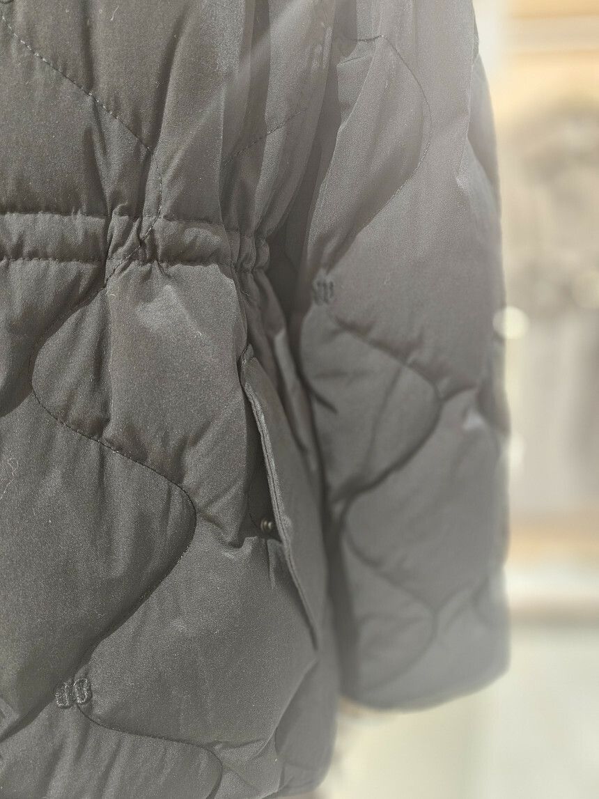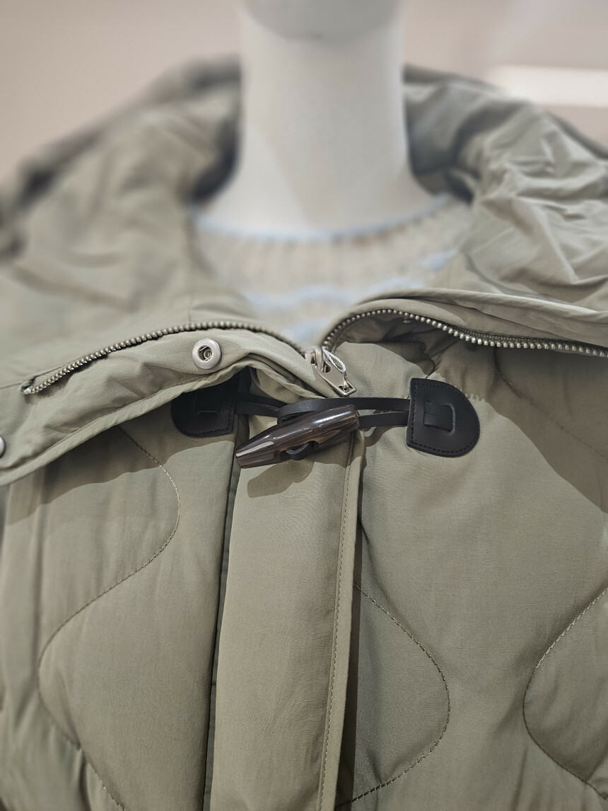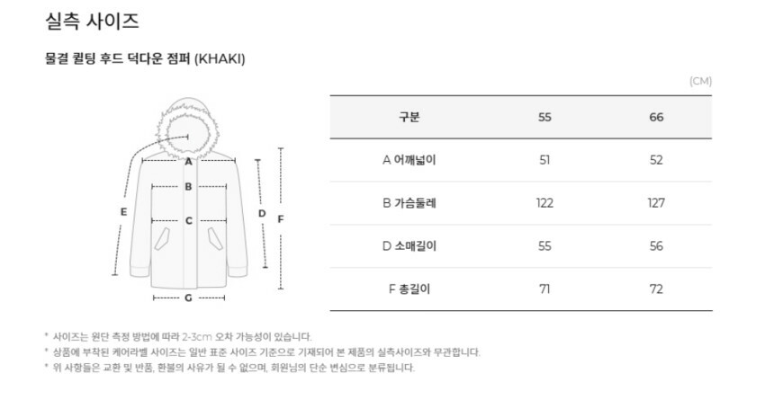 겉감 폴리에스터 65%, 면 35%, 안감 폴리에스터 100%, 충전재 솜털 80%, 깃털 20%,