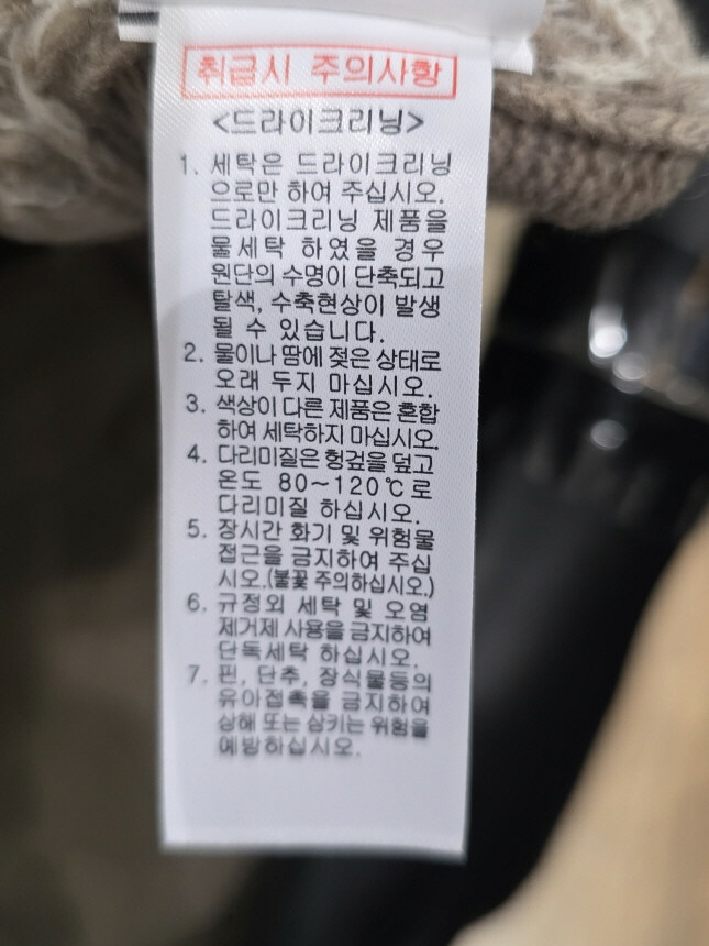 겉감 : 모 43% , 나일론 41% , 폴리에스터 16%