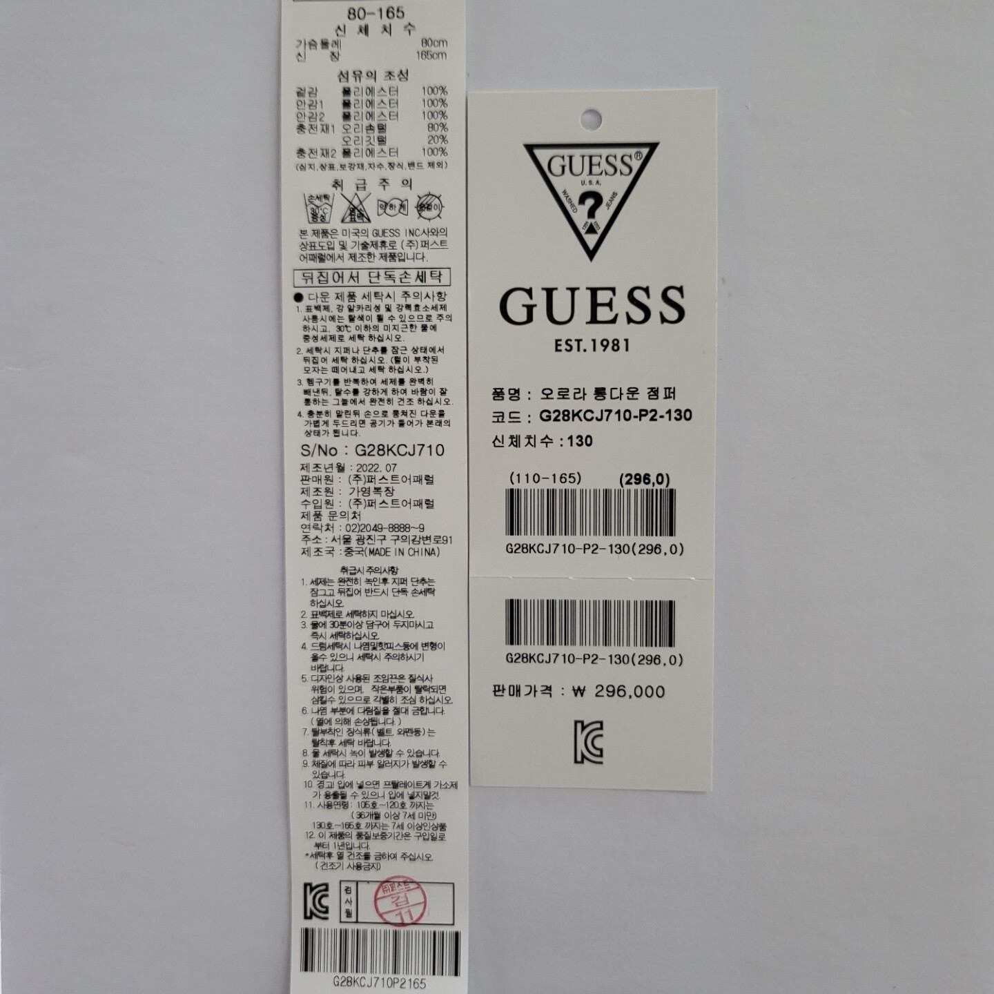 * 혼용율: 겉감 : 폴리에스터 100% 안감1 : 폴리에스터 100% 안감2 : 폴리에스터 100% 충전재1 : 오리솜털 80% 오리깃털 20% 충전재2 : 폴리에스터 100%